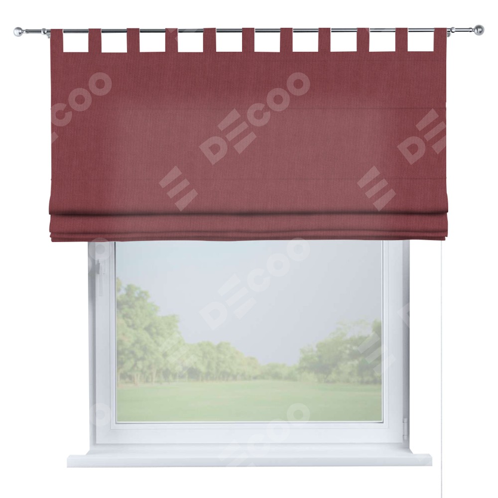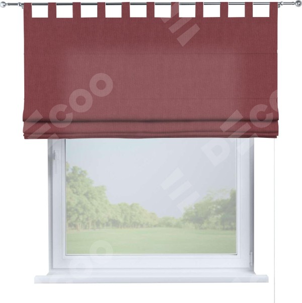 Римская штора производителя «Cortin», используется для проёма, пошита из ткани канвас ягодный, артикул ткани v-28. Данная модель пошита на петлях, комплектуется на выбор круглым карнизом и подходит для монтажа на стену. Римская штора на петлях имеет простую систему регулировки высоты, отличительным преимуществом данной модели является простой способ монтажа. Достаточно повесить ее на трубу и штора готова!