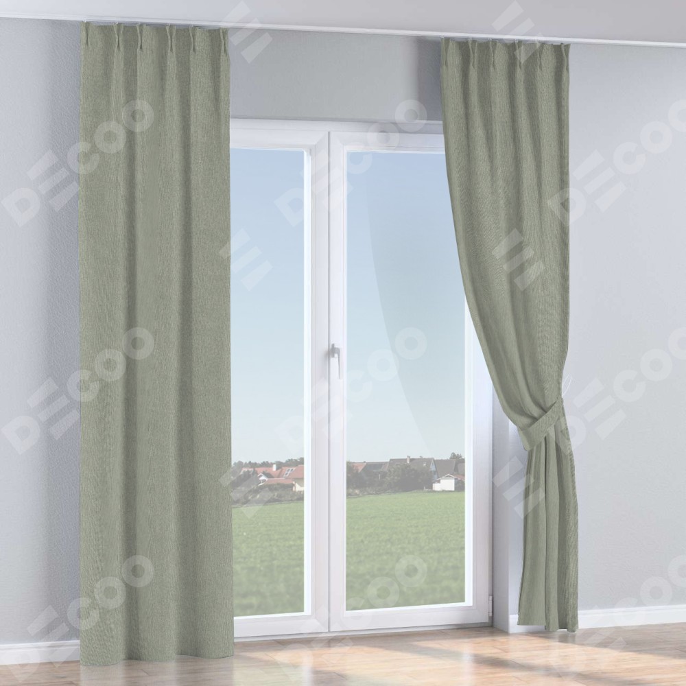 Комплект прямых штор, от производителя «Cortin», пошиты из ткани лён димаут серый, артикул ткани 91009. С изнаночной стороны в верхней части штор пристрачивается шторная лента с декоративными складками «Кустик». Для создания элегантных складок прямые шторы шьются по стандарту с коэффициентом 1:2 (на 100 см. ширины проёма 200 см. ширины ткани).