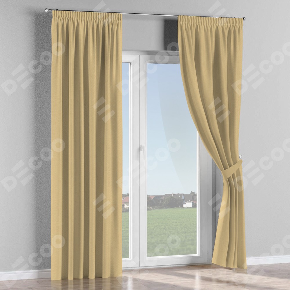 Комплект прямых штор, от производителя «Cortin», пошиты из ткани канвас бежевый, артикул ткани v-96. С изнаночной стороны в верхней части штор пристрачивается шторная лента с декоративными складками «Карандаш». Для создания элегантных складок прямые шторы шьются по стандарту с коэффициентом 1:2 (на 100 см. ширины проёма 200 см. ширины ткани).
