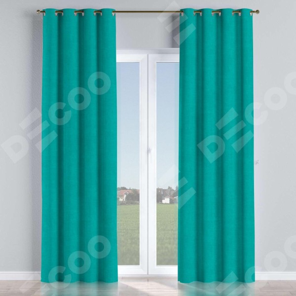 Комплект прямых штор, от производителя «Cortin», пошиты из ткани канвас бирюзовый, артикул ткани v-1048. Данная модель пошита на люверсах, комплектуется на выбор круглым карнизом и подходит для монтажа на стену или потолок. Прямые шторы на люверсах шьются по стандарту с коэффициентом 1/2 (на 100 см. ширины проёма 200 см. ширины ткани), отличительным преимуществом данной модели является простой способ монтажа. Достаточно повесить ее на трубу и штора готова!