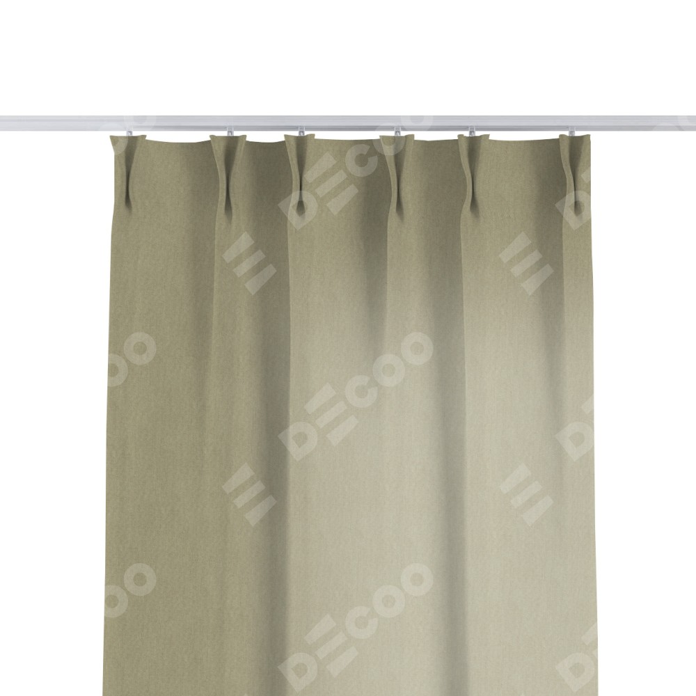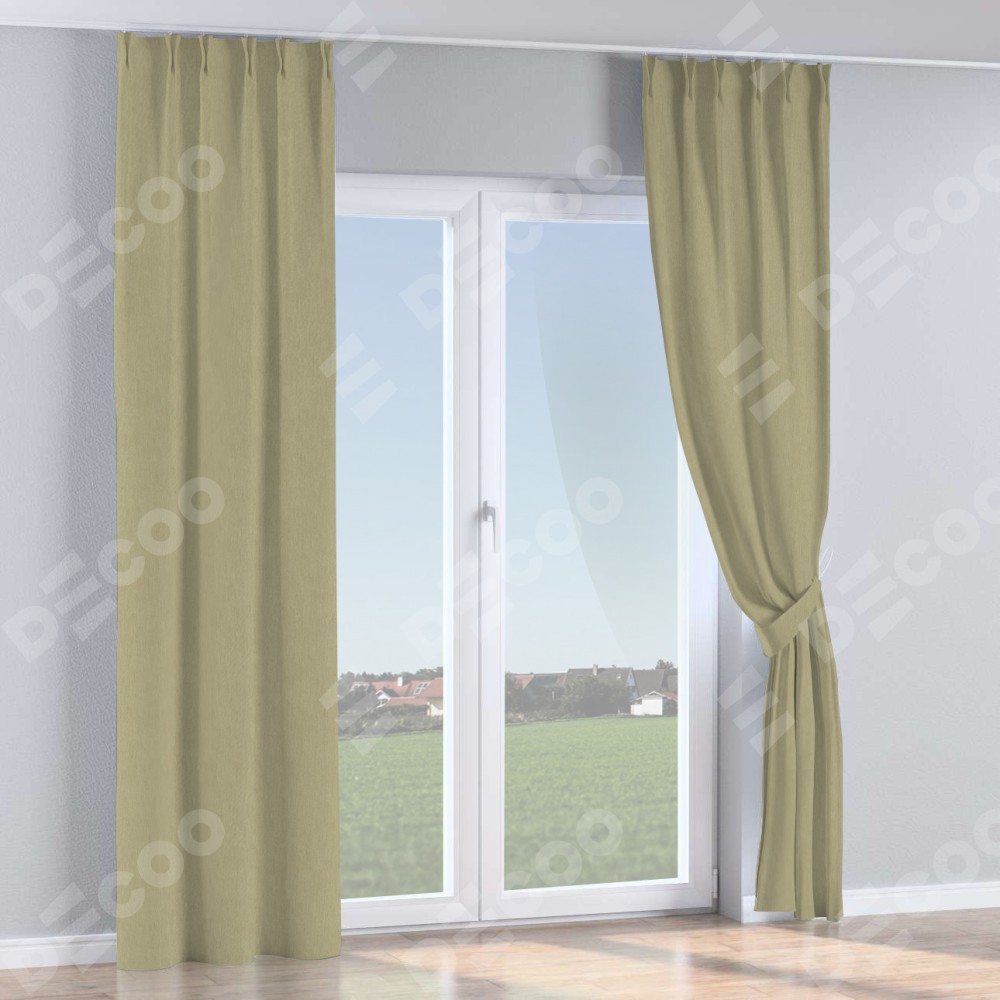 Комплект прямых штор, от производителя «Cortin», пошиты из ткани канвас латте, артикул ткани v-12490. С изнаночной стороны в верхней части штор пристрачивается шторная лента с декоративными складками «Кустик». Для создания элегантных складок прямые шторы шьются по стандарту с коэффициентом 1:2 (на 100 см. ширины проёма 200 см. ширины ткани).