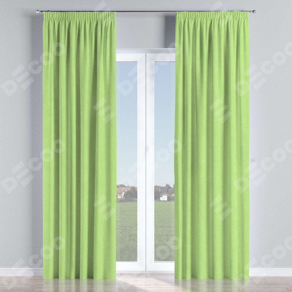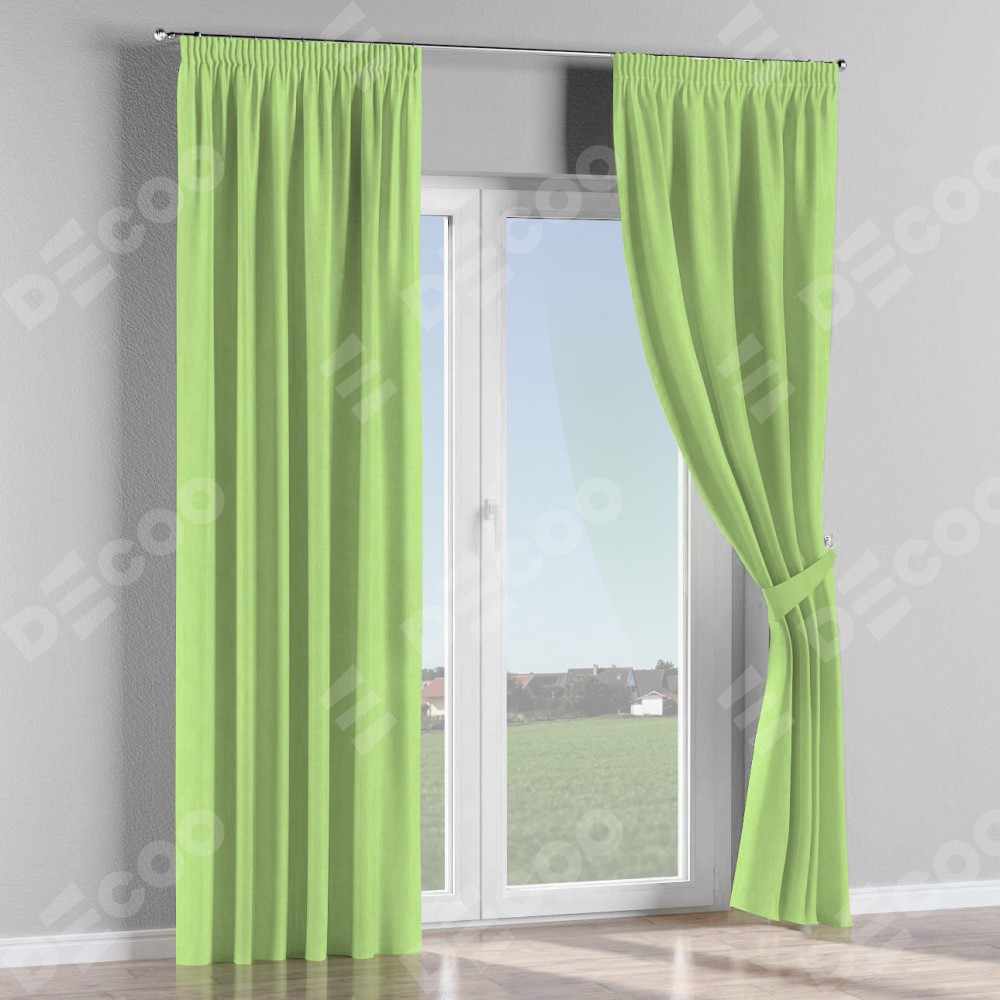 Комплект прямых штор, от производителя «Cortin», пошиты из ткани канвас липовый, артикул ткани v-207. С изнаночной стороны в верхней части штор пристрачивается шторная лента с декоративными складками «Карандаш». Для создания элегантных складок прямые шторы шьются по стандарту с коэффициентом 1:2 (на 100 см. ширины проёма 200 см. ширины ткани).