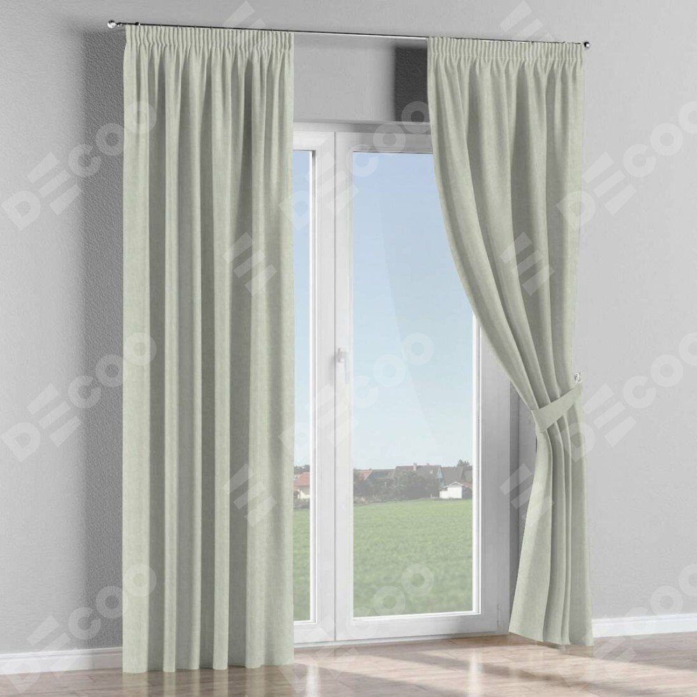 Комплект прямых штор, от производителя «Cortin», пошиты из ткани канвас светло-серый, артикул ткани v-371. С изнаночной стороны в верхней части штор пристрачивается шторная лента с декоративными складками «Карандаш». Для создания элегантных складок прямые шторы шьются по стандарту с коэффициентом 1:2 (на 100 см. ширины проёма 200 см. ширины ткани).