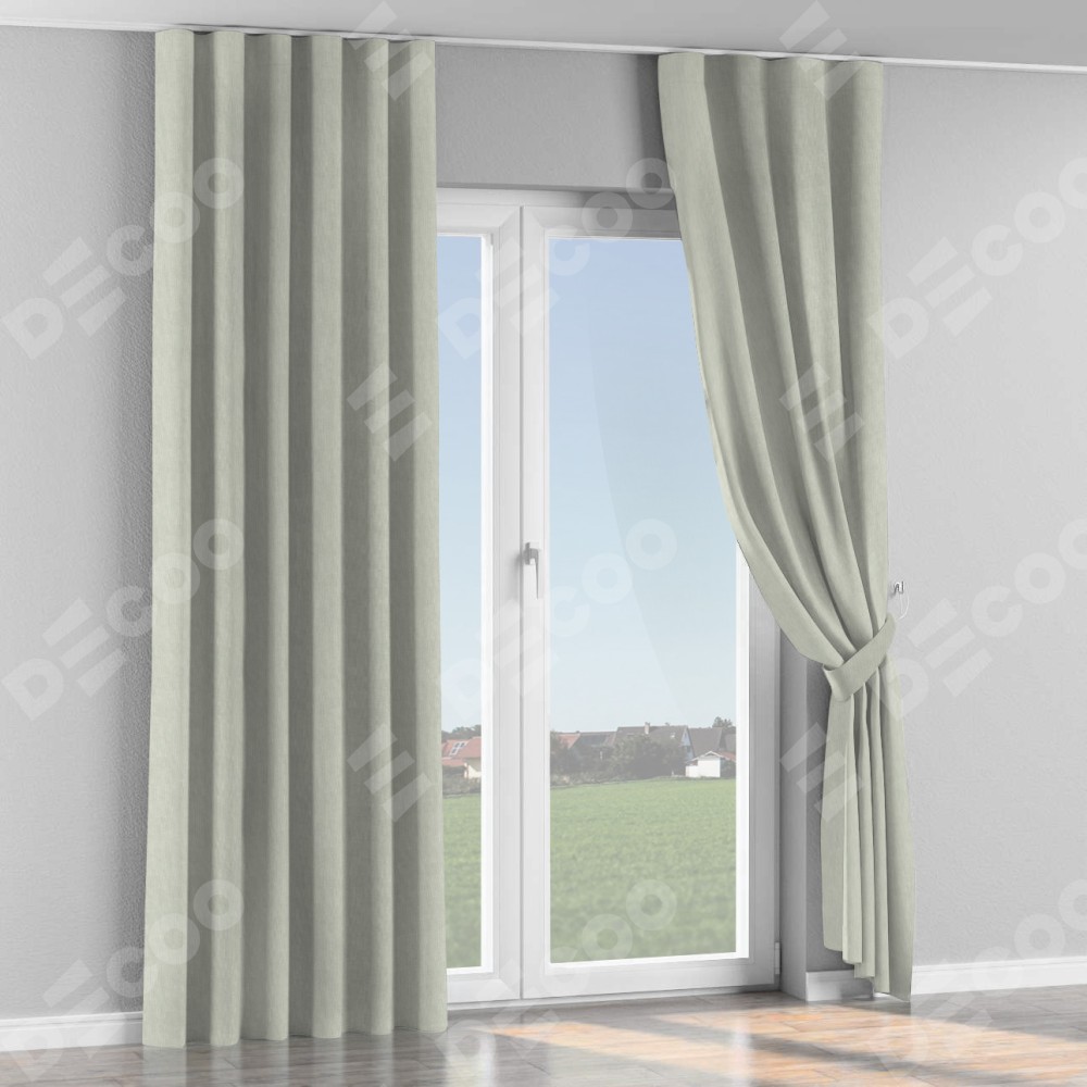 Комплект прямых штор, от производителя «Cortin», пошиты из ткани канвас светло-серый, артикул ткани v-371. С изнаночной стороны в верхней части штор пристрачивается шторная лента с декоративными складками «Волна». Для создания элегантных складок прямые шторы шьются по стандарту с коэффициентом 1:2 (на 100 см. ширины проёма 200 см. ширины ткани).