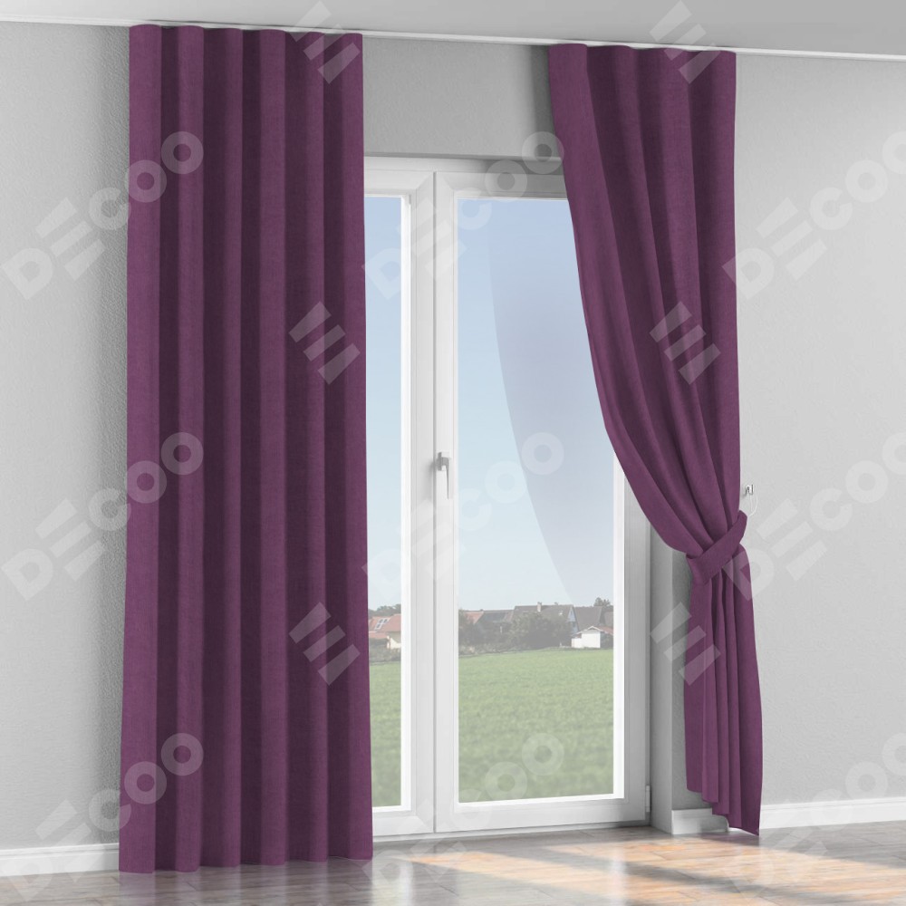 Комплект прямых штор, от производителя «Cortin», пошиты из ткани канвас сиреневый, артикул ткани v-98. С изнаночной стороны в верхней части штор пристрачивается шторная лента с декоративными складками «Волна». Для создания элегантных складок прямые шторы шьются по стандарту с коэффициентом 1:2 (на 100 см. ширины проёма 200 см. ширины ткани).