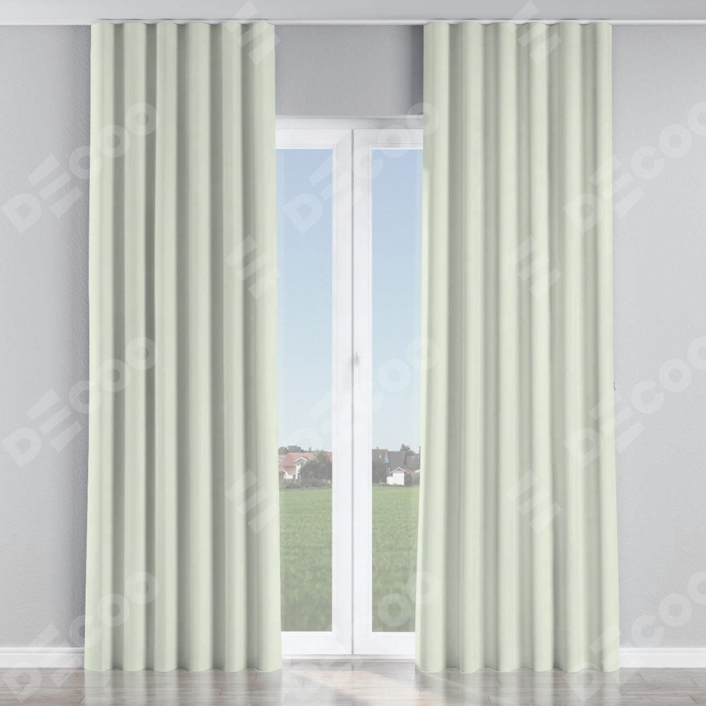 Комплект прямых штор, от производителя «Cortin», пошиты из ткани канвас сливочный, артикул ткани v-94. С изнаночной стороны в верхней части штор пристрачивается шторная лента с декоративными складками «Волна». Для создания элегантных складок прямые шторы шьются по стандарту с коэффициентом 1:2 (на 100 см. ширины проёма 200 см. ширины ткани).