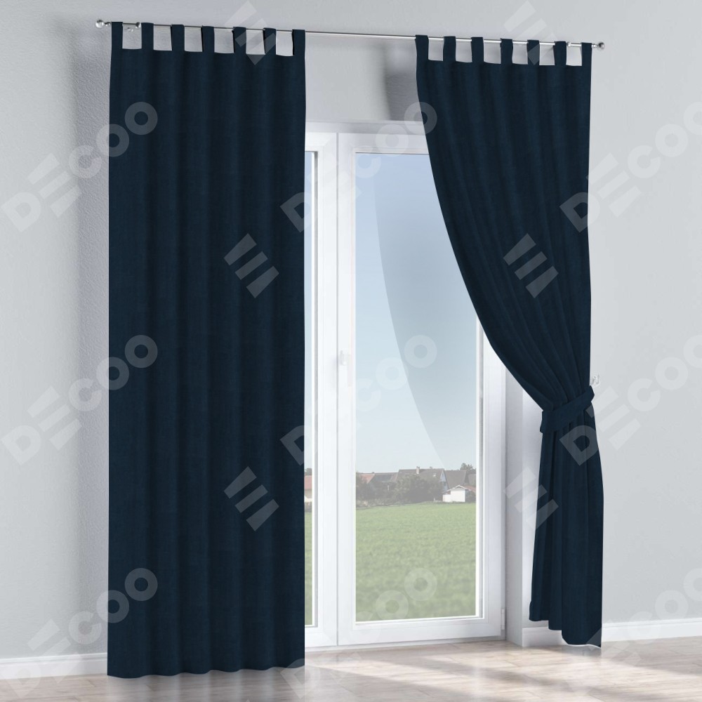 Комплект прямых штор, от производителя «Cortin», пошиты из ткани канвас тёмно-синий, артикул ткани v-206. Данная модель пошита на петлях, комплектуется на выбор круглым карнизом и подходит для монтажа на стену или потолок. Прямые шторы на петлях шьются по стандарту с коэффициентом 1/2 (на 100 см. ширины проёма 200 см. ширины ткани), отличительным преимуществом данной модели является простой способ монтажа. Достаточно повесить ее на трубу и штора готова!