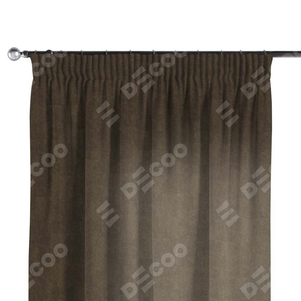Комплект прямых штор, от производителя «Cortin», пошиты из ткани канвас шоколадный, артикул ткани v-193. С изнаночной стороны в верхней части штор пристрачивается шторная лента с декоративными складками «Карандаш». Для создания элегантных складок прямые шторы шьются по стандарту с коэффициентом 1:2 (на 100 см. ширины проёма 200 см. ширины ткани).