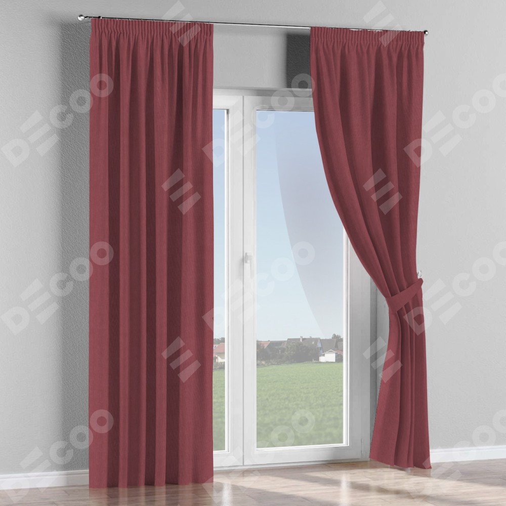 Комплект прямых штор, от производителя «Cortin», пошиты из ткани канвас ягодный, артикул ткани v-28. С изнаночной стороны в верхней части штор пристрачивается шторная лента с декоративными складками «Карандаш». Для создания элегантных складок прямые шторы шьются по стандарту с коэффициентом 1:2 (на 100 см. ширины проёма 200 см. ширины ткани).