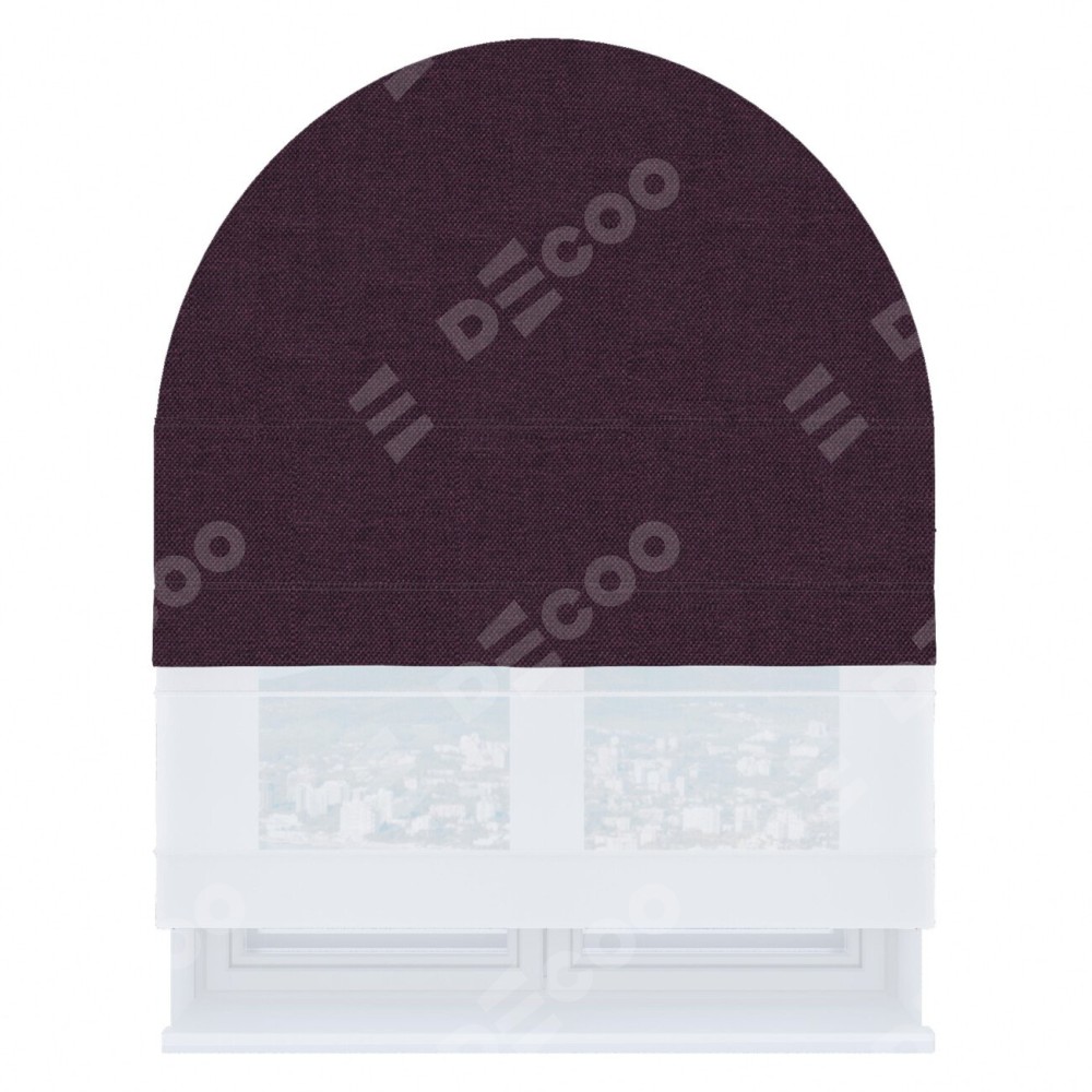 Римская штора «Кортин», лён димаут фиолетовый, день-ночь для арочного проёма