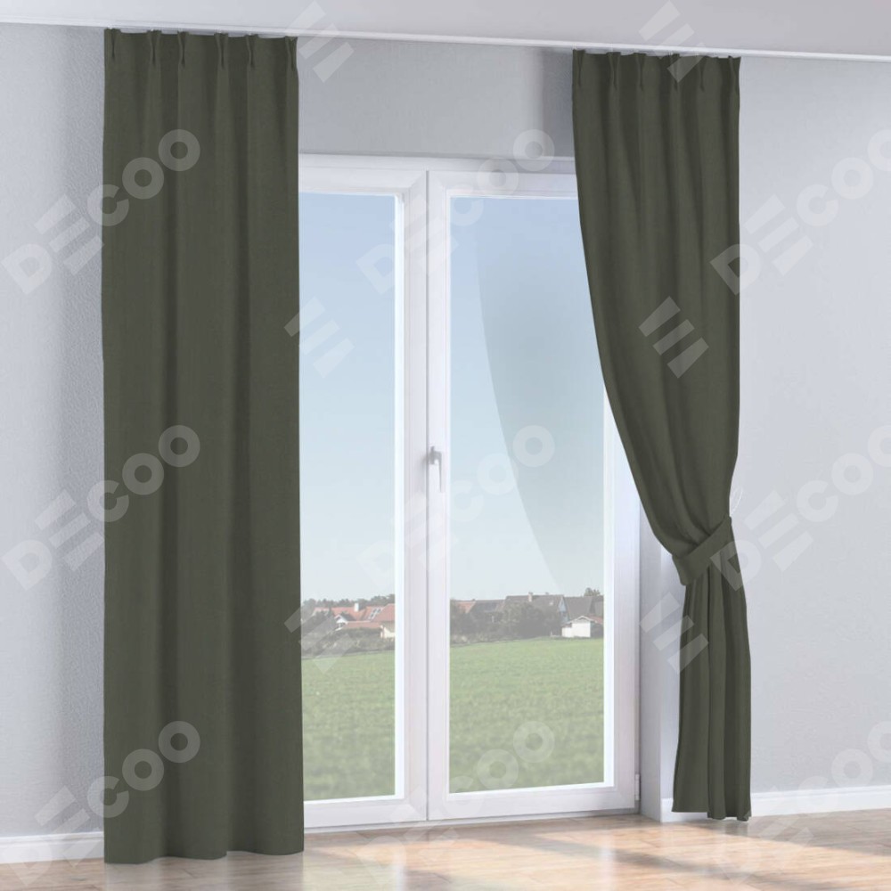Комплект прямых штор, от производителя «Cortin», пошиты из ткани блэкаут однотонный дымчато-серый, артикул ткани 91571−1. С изнаночной стороны в верхней части штор пристрачивается шторная лента с декоративными складками «Кустик». Для создания элегантных складок прямые шторы шьются по стандарту с коэффициентом 1:2 (на 100 см. ширины проёма 200 см. ширины ткани).
