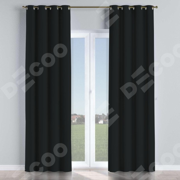 Комплект прямых штор, от производителя «Cortin», пошиты из ткани блэкаут однотонный черный, артикул ткани 91571−2. Данная модель пошита на люверсах, комплектуется на выбор круглым карнизом и подходит для монтажа на стену или потолок. Прямые шторы на люверсах шьются по стандарту с коэффициентом 1/2 (на 100 см. ширины проёма 200 см. ширины ткани), отличительным преимуществом данной модели является простой способ монтажа. Достаточно повесить ее на трубу и штора готова!