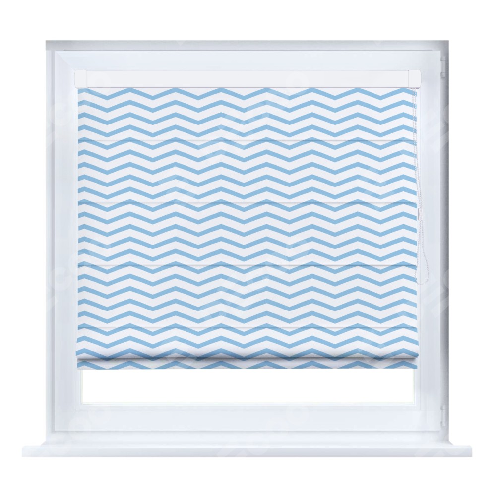 Римская штора производителя «Cortin», устанавливается на створку окна, пошита из ткани блэкаут с нанесением сублимационной печати «Зигзаг мелкий». Штора шьётся по индивидуальным размерам, для данного типа римской шторы возможная ширина от 35 до 150 см., высота до 250 см.