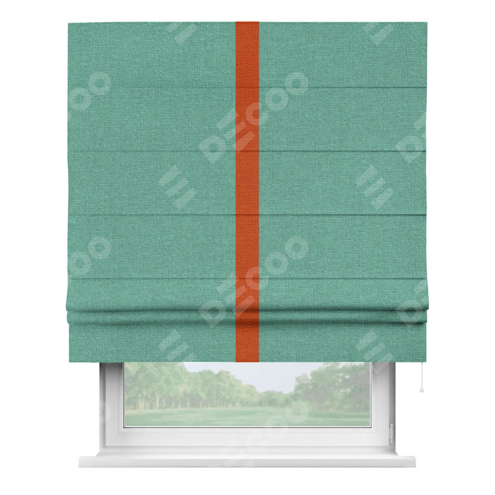 Римская штора «Кортин» с кантом Хайвэй, для проема, лён светло-бирюзовый