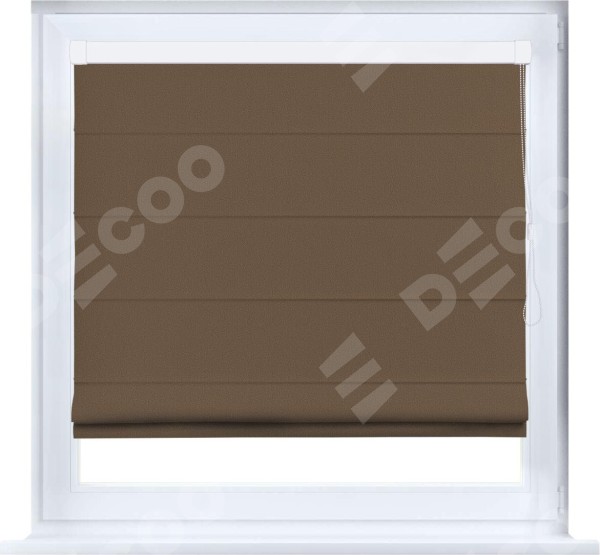 Римская штора производителя «Cortin», устанавливается на створку окна, пошита из ткани блэкаут однотонный коричневый, артикул 91334. Штора шьётся по индивидуальным размерам, для данного типа римской шторы возможная ширина от 35 до 150 см., высота до 250 см.