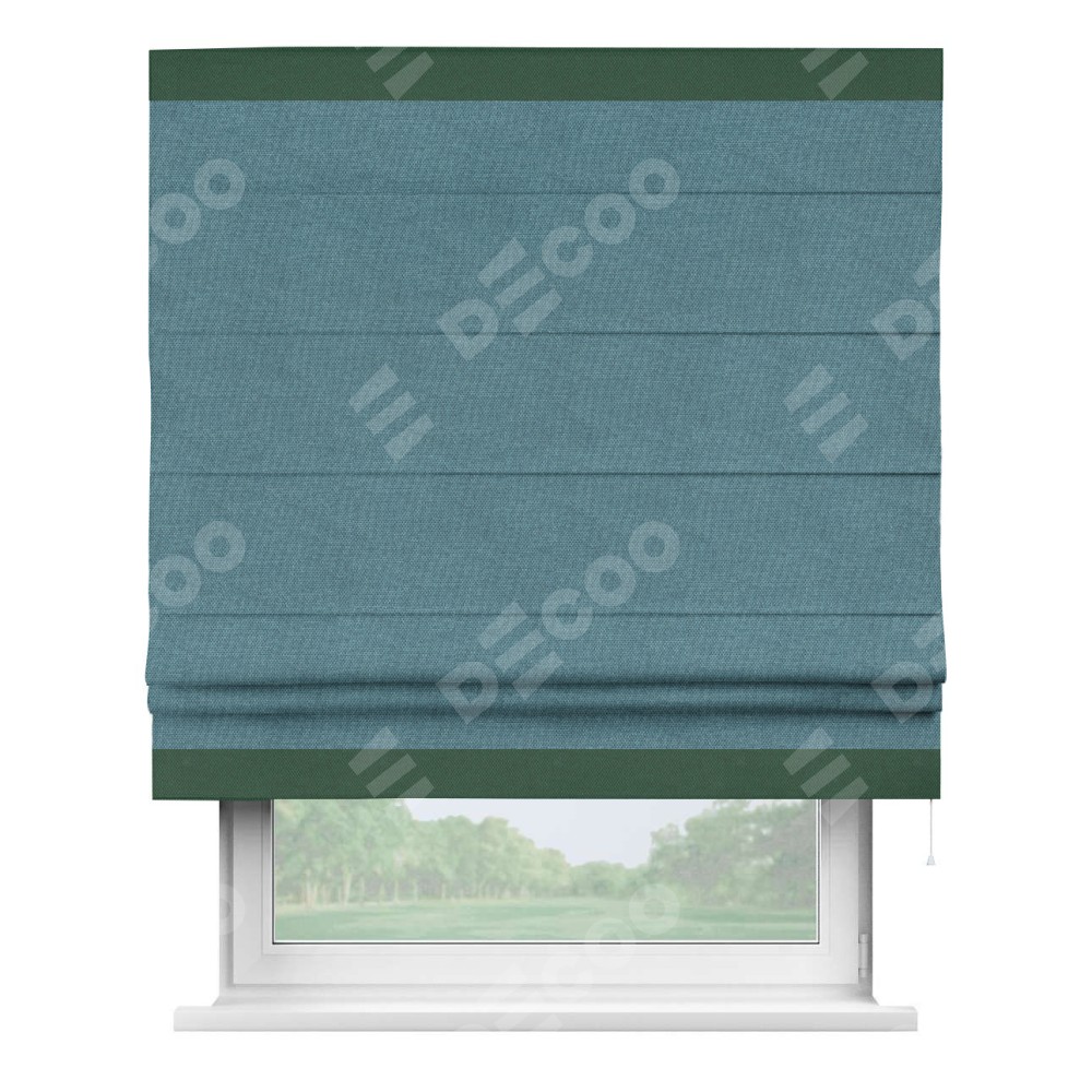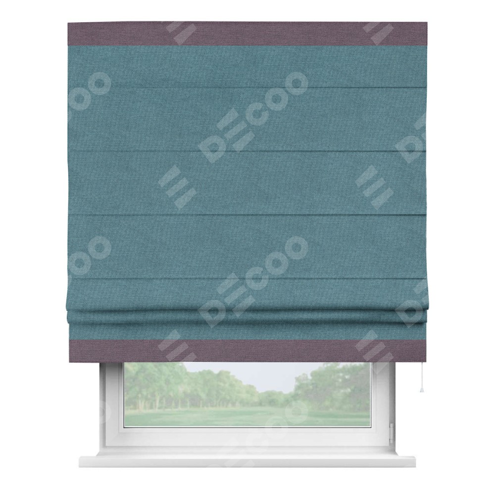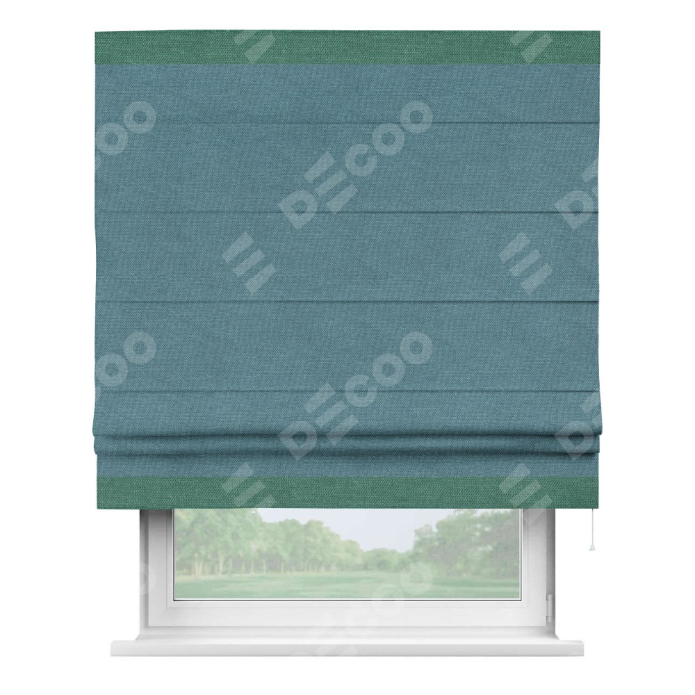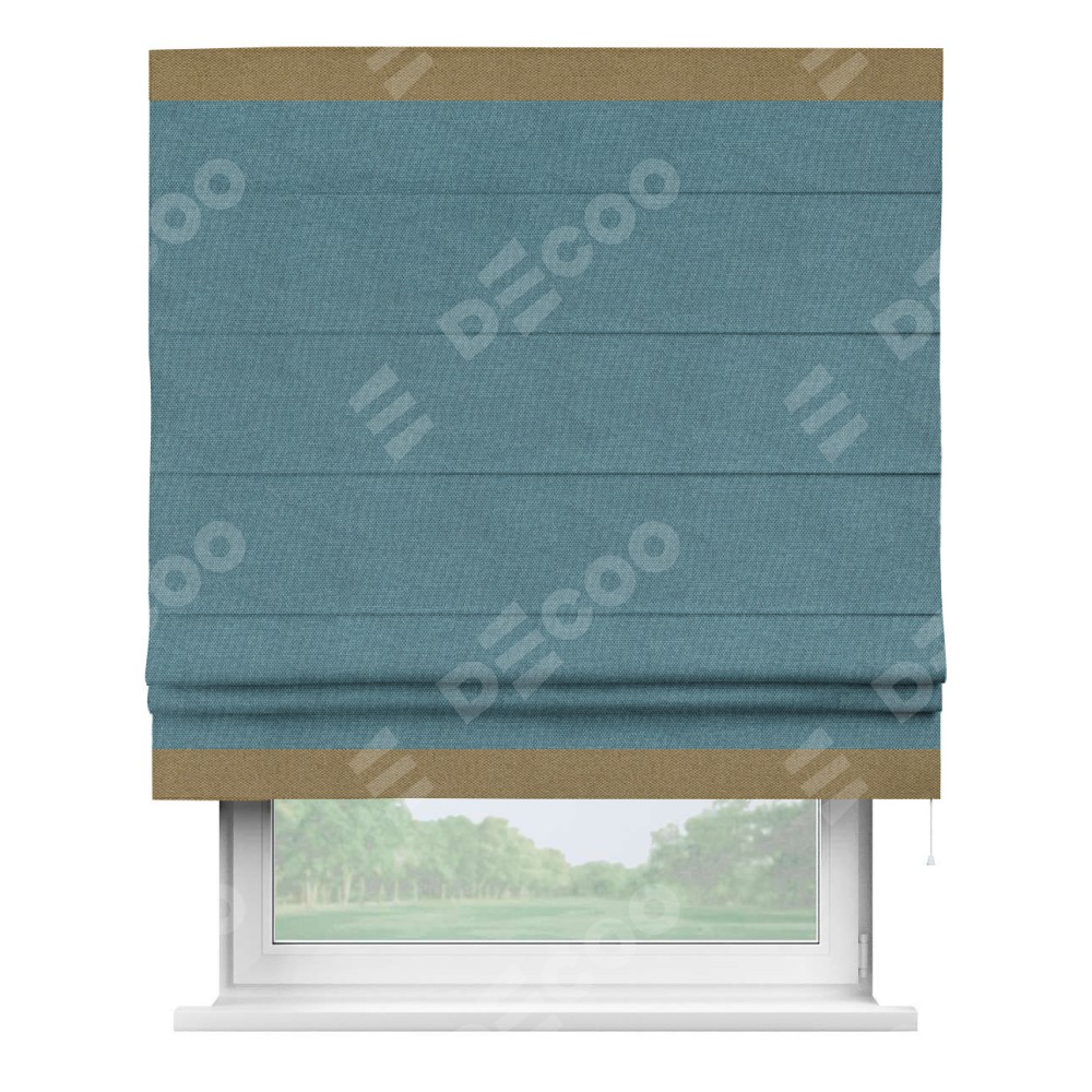 Римская штора «Кортин» для проема, лён димаут светло-синий с кантом Горизонт