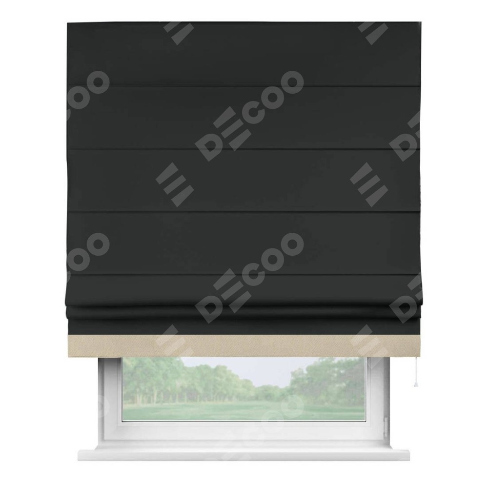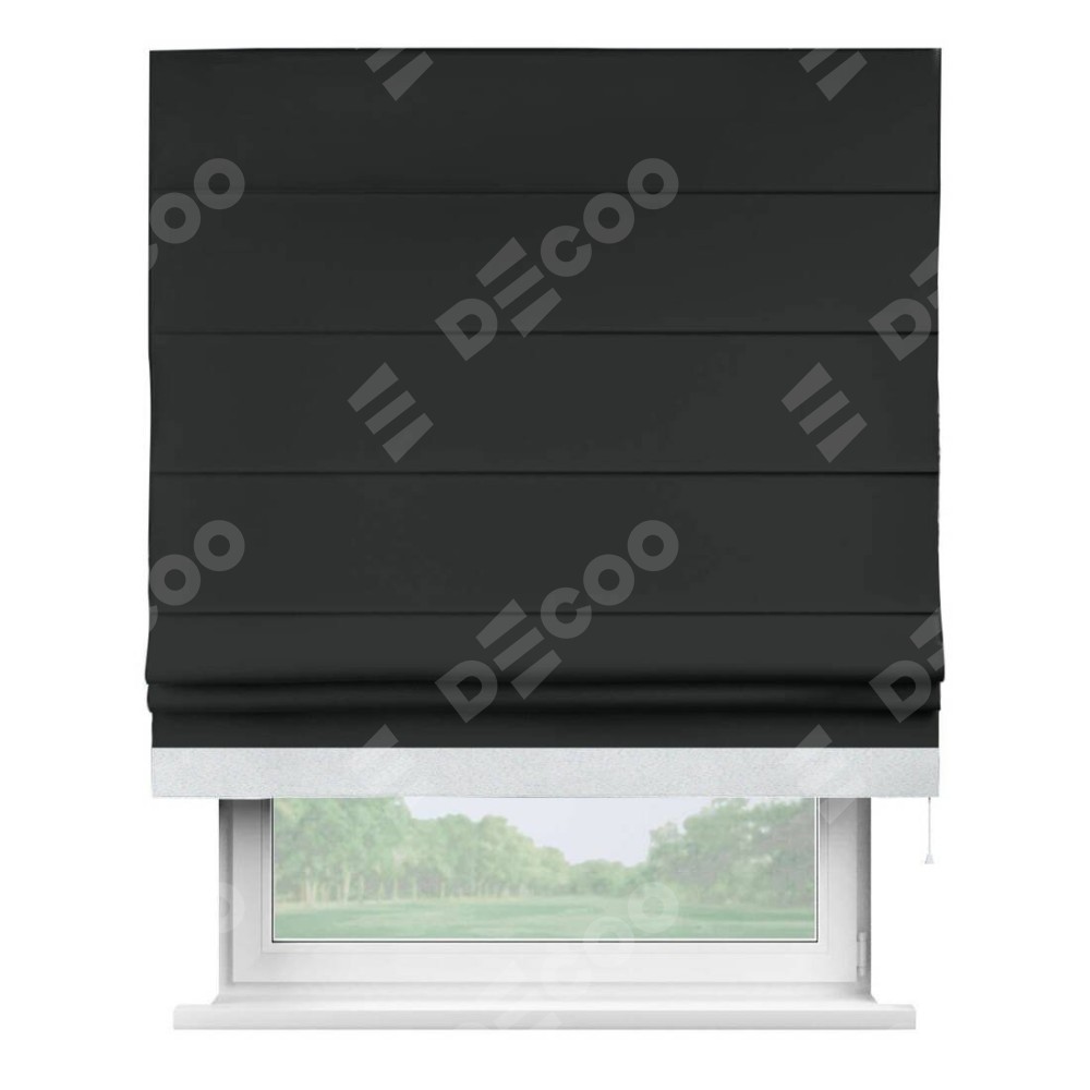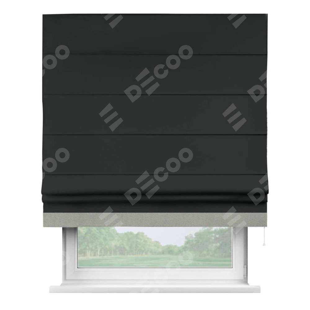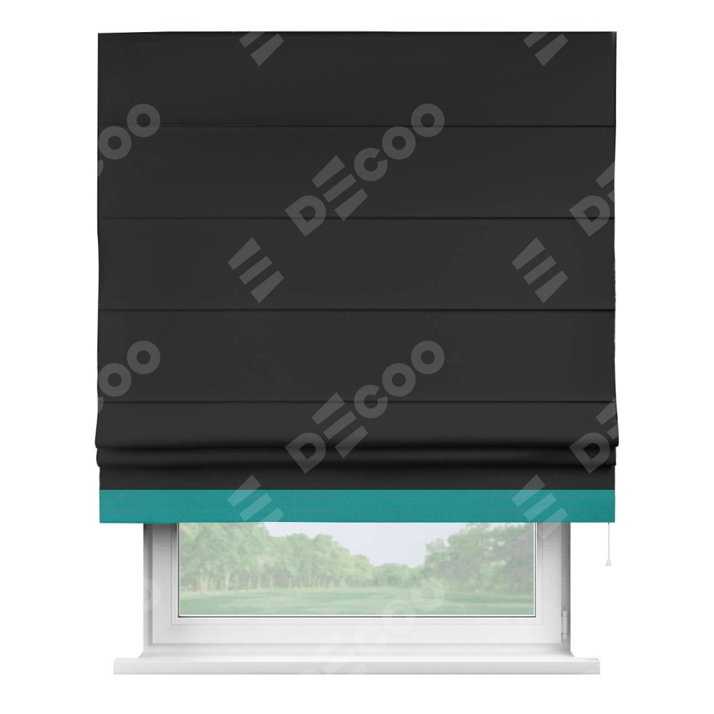 Римская штора «Кортин» для проема, блэкаут однотонный черный с кантом Джестер