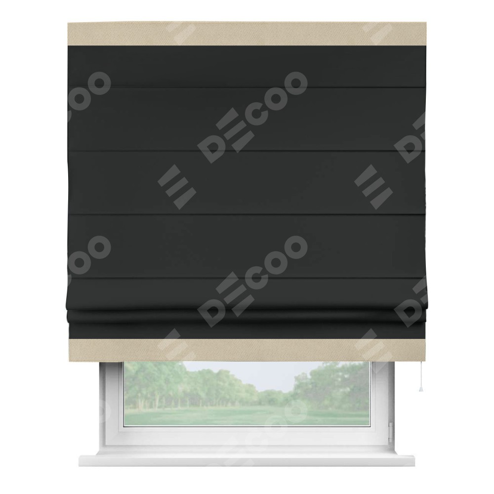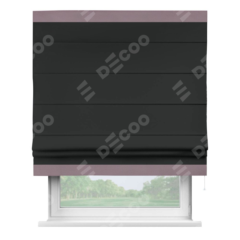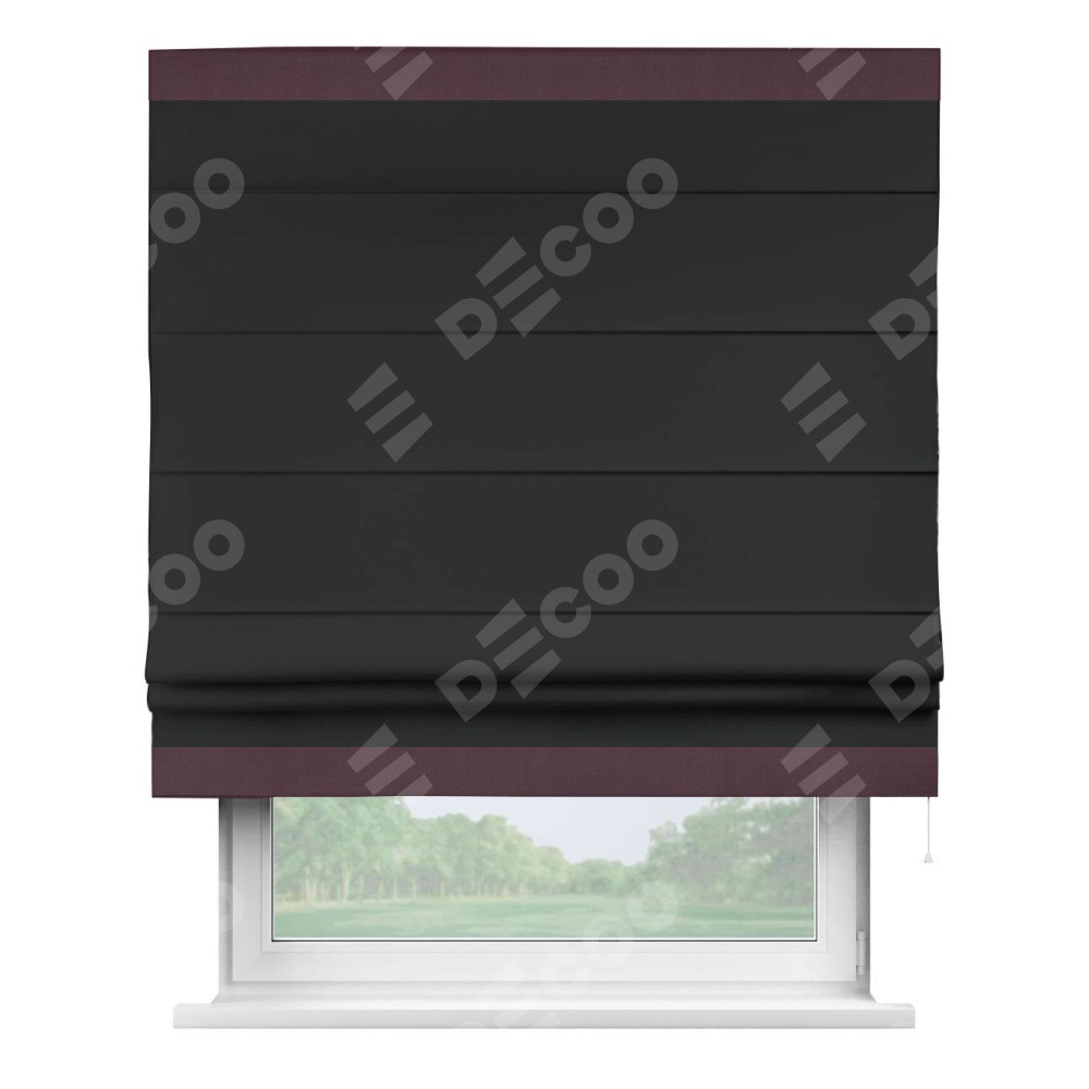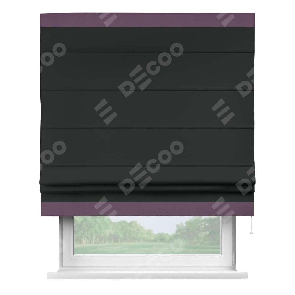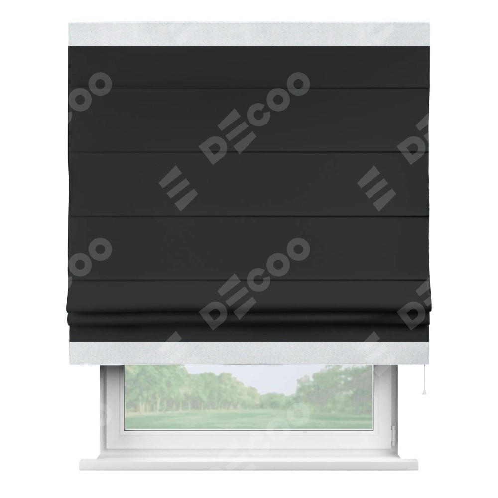 Римская штора «Кортин» для проема, блэкаут однотонный черный с кантом Горизонт