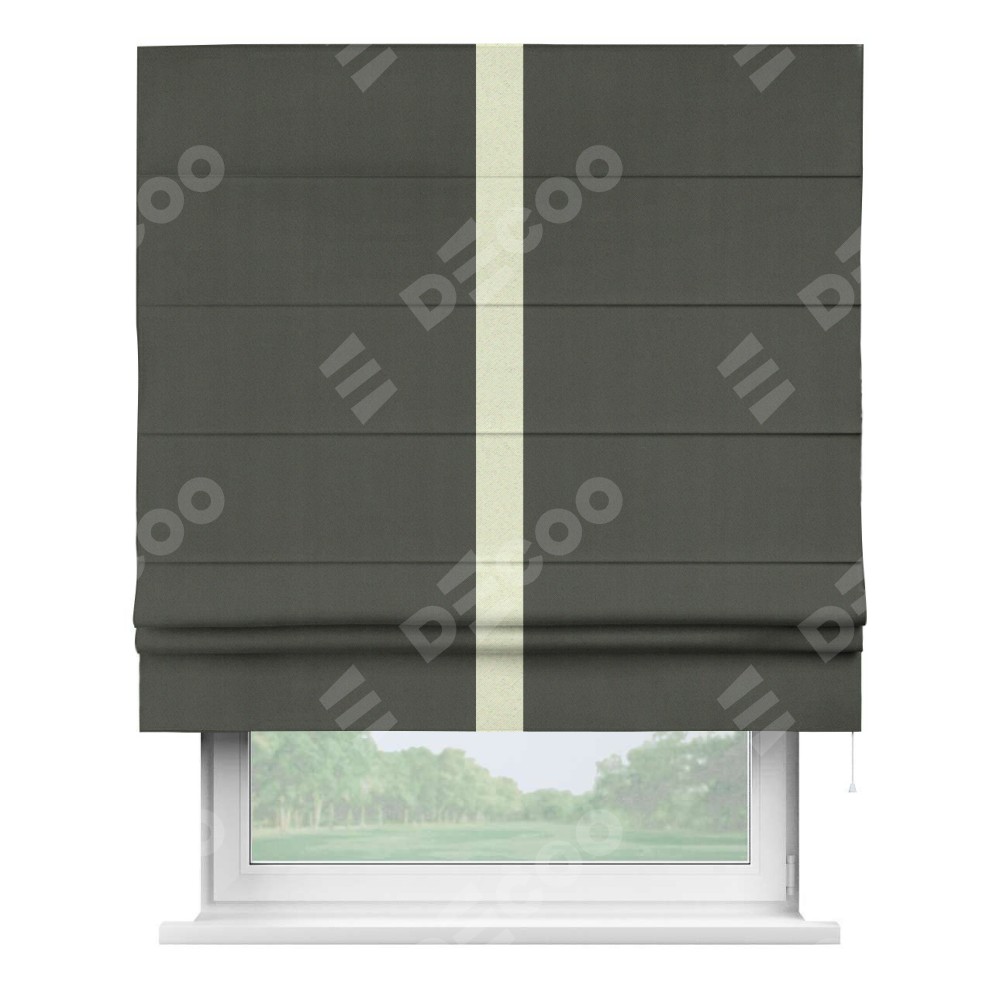 Римская штора «Кортин» для проема, блэкаут однотонный дымчато-серый с кантом Хайвэй