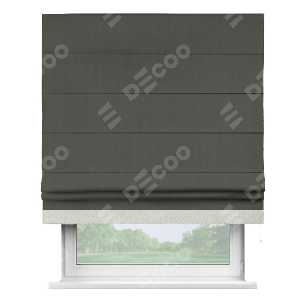 Римская штора «Кортин» для проема, блэкаут однотонный дымчато-серый с кантом Джестер