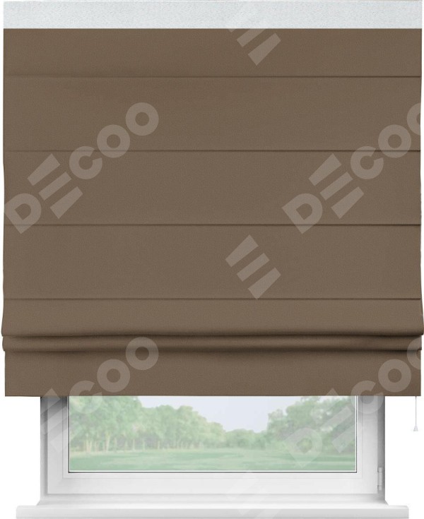 Римская штора «Кортин» для проема, блэкаут однотонный коричневый с кантом Кинг