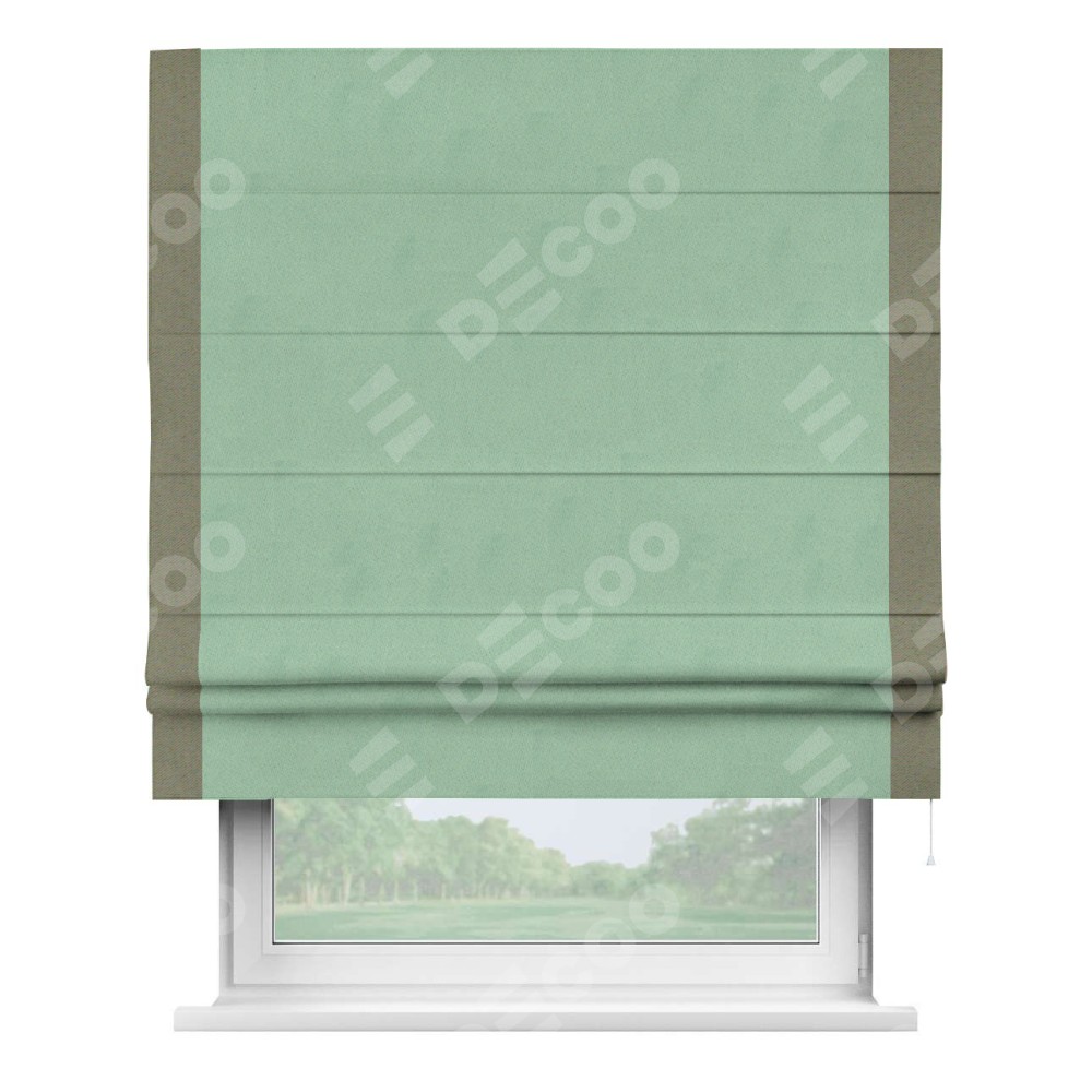 Римская штора «Кортин» для проема, блэкаут однотонный ментоловый с кантом Стрим Дуо