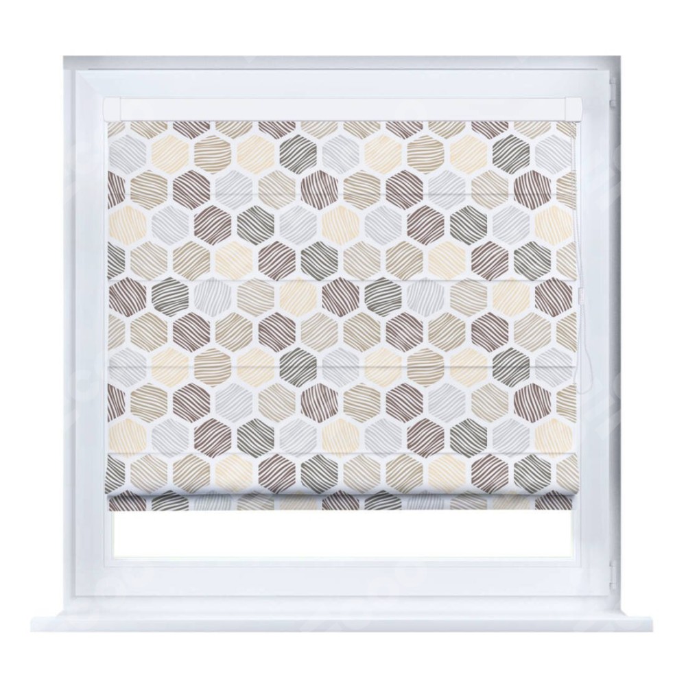 Римская штора производителя «Cortin», устанавливается на створку окна, пошита из ткани блэкаут с нанесением сублимационной печати «Мозаика соты». Штора шьётся по индивидуальным размерам, для данного типа римской шторы возможная ширина от 35 до 150 см., высота до 250 см.