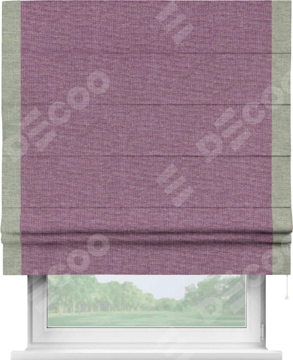 Римская штора «Кортин» с кантом Стрим Дуо, для проема, ткань лён кашемир сиреневый