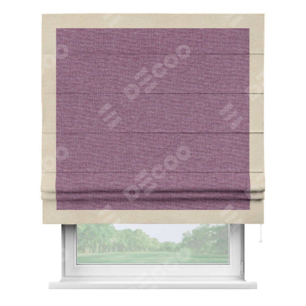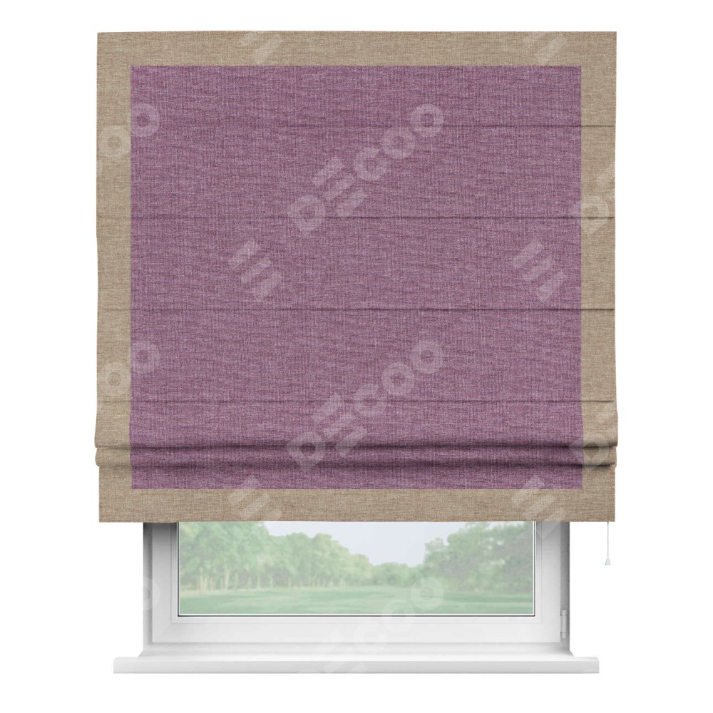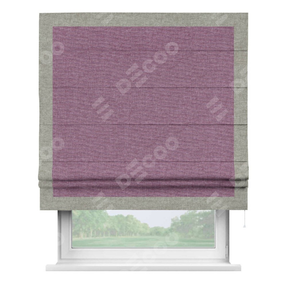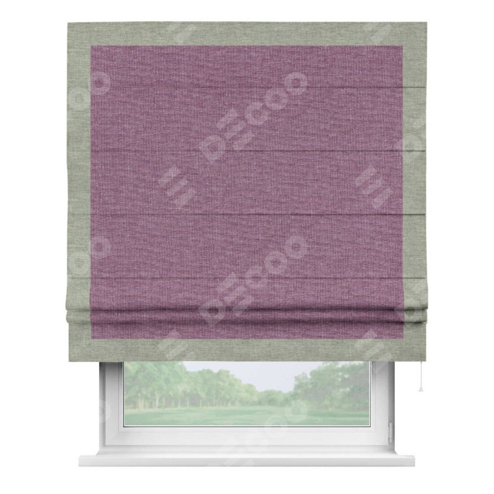 Римская штора «Кортин» с кантом Чесс, для проема, ткань лён кашемир сиреневый
