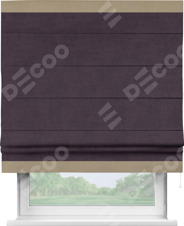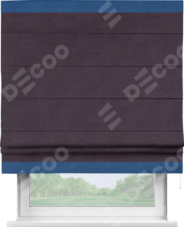 Римская штора «Кортин» для проема, вельвет тёмно-фиолетовый с кантом Горизонт