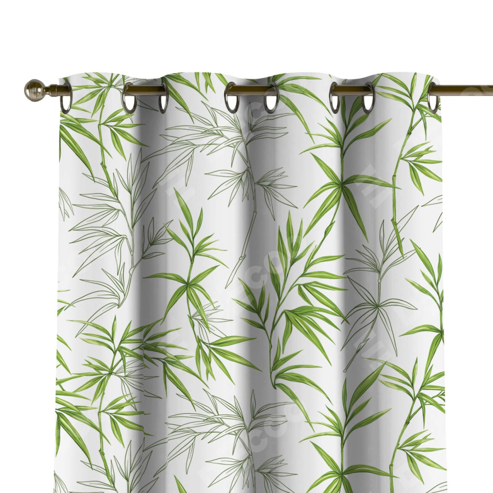 Комплект прямых штор, от производителя «Cortin», пошиты из ткани блэкаут с нанесением сублимационной печати «Зелёный бамбук». Данная модель пошита на люверсах, комплектуется на выбор круглым карнизом и подходит для монтажа на стену или потолок. Прямые шторы на люверсах шьются по стандарту с коэффициентом 1/2 (на 100 см. ширины проёма 200 см. ширины ткани), отличительным преимуществом данной модели является простой способ монтажа. Достаточно повесить ее на трубу и штора готова!