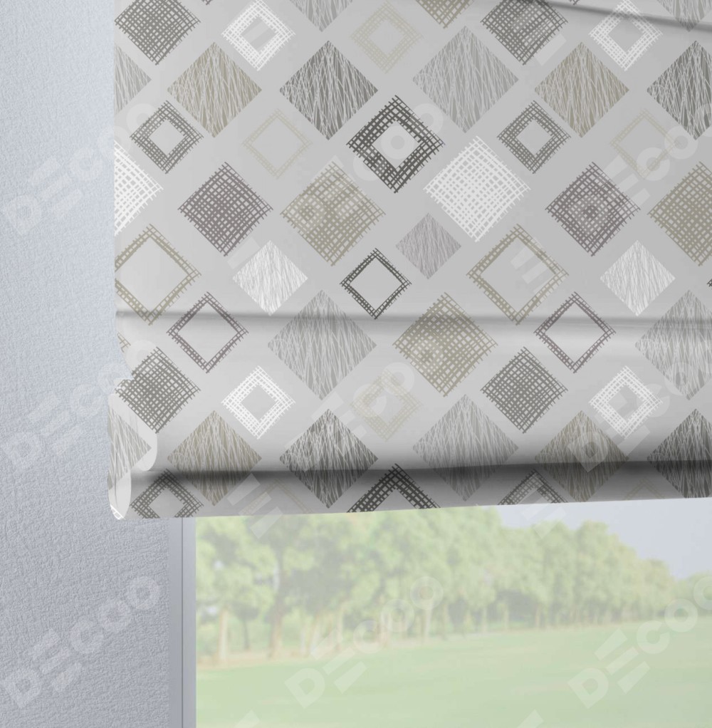 Римская штора производителя «Cortin», используется для проёма, пошита из ткани блэкаут с нанесением сублимационной печати «Квадро». Данная модель пошита на петлях, комплектуется на выбор круглым карнизом и подходит для монтажа на стену. Римская штора на петлях имеет простую систему регулировки высоты, отличительным преимуществом данной модели является простой способ монтажа. Достаточно повесить ее на трубу и штора готова!