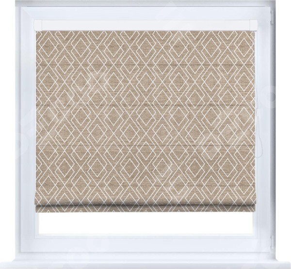 Римская штора производителя «Cortin», устанавливается на створку окна, пошита из ткани блэкаут с нанесением сублимационной печати «Кристальные грани». Штора шьётся по индивидуальным размерам, для данного типа римской шторы возможная ширина от 35 до 150 см., высота до 250 см.