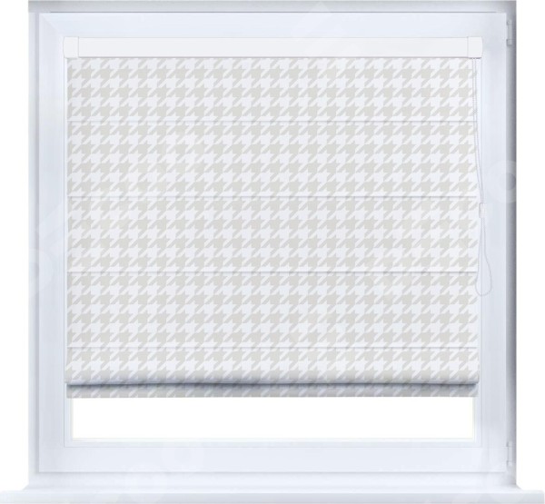 Римская штора производителя «Cortin», устанавливается на створку окна, пошита из ткани блэкаут с нанесением сублимационной печати «Гусиные лапки» молочный». Штора шьётся по индивидуальным размерам, для данного типа римской шторы возможная ширина от 35 до 150 см., высота до 250 см.