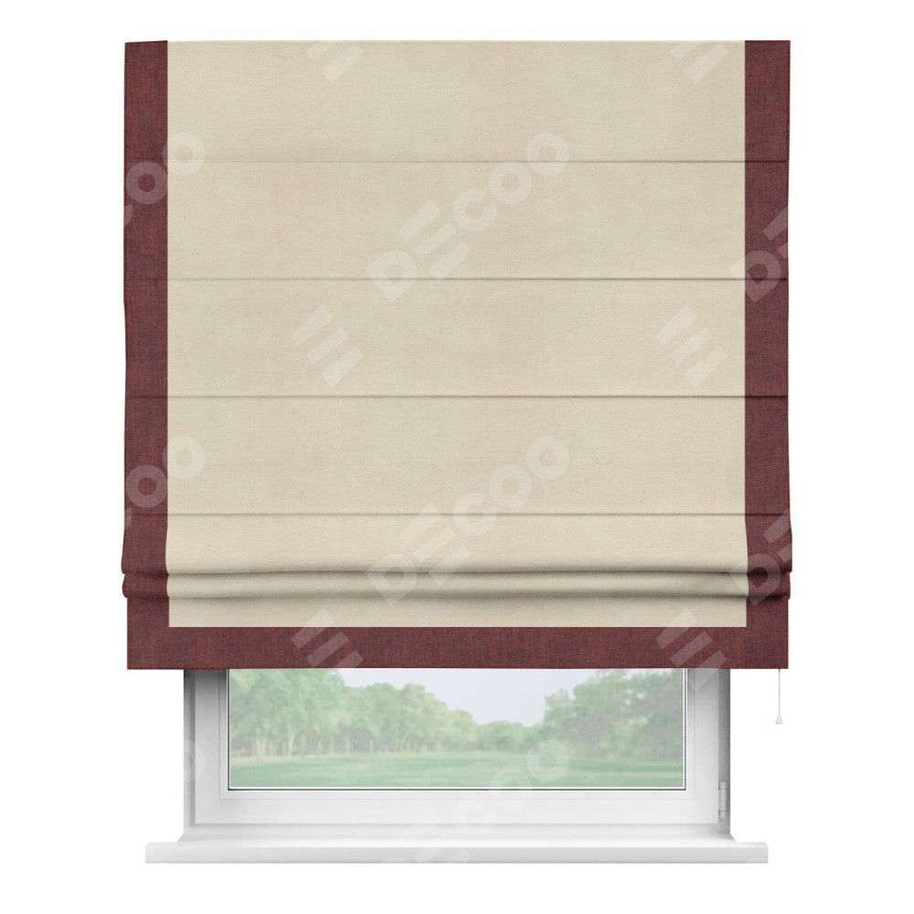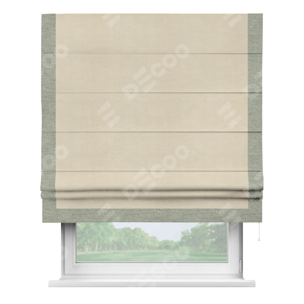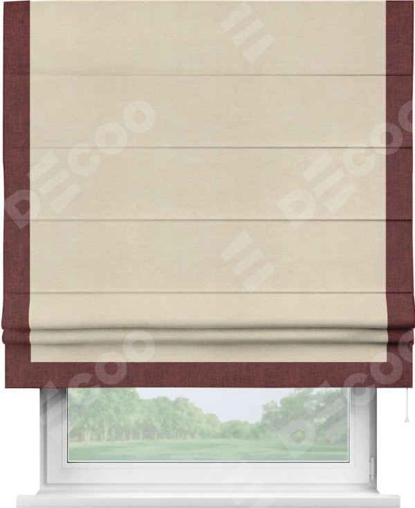 Римская штора производителя «Cortin», используется для проёма, пошита из ткани лён кашемир шампань, артикул 17205. Отделка шторы кантом «Виктория», ткань для канта используется из льна разной расцветки на выбор. Имеет универсальный механизм и подходит для монтажа: на потолок, на стену и в нишу.