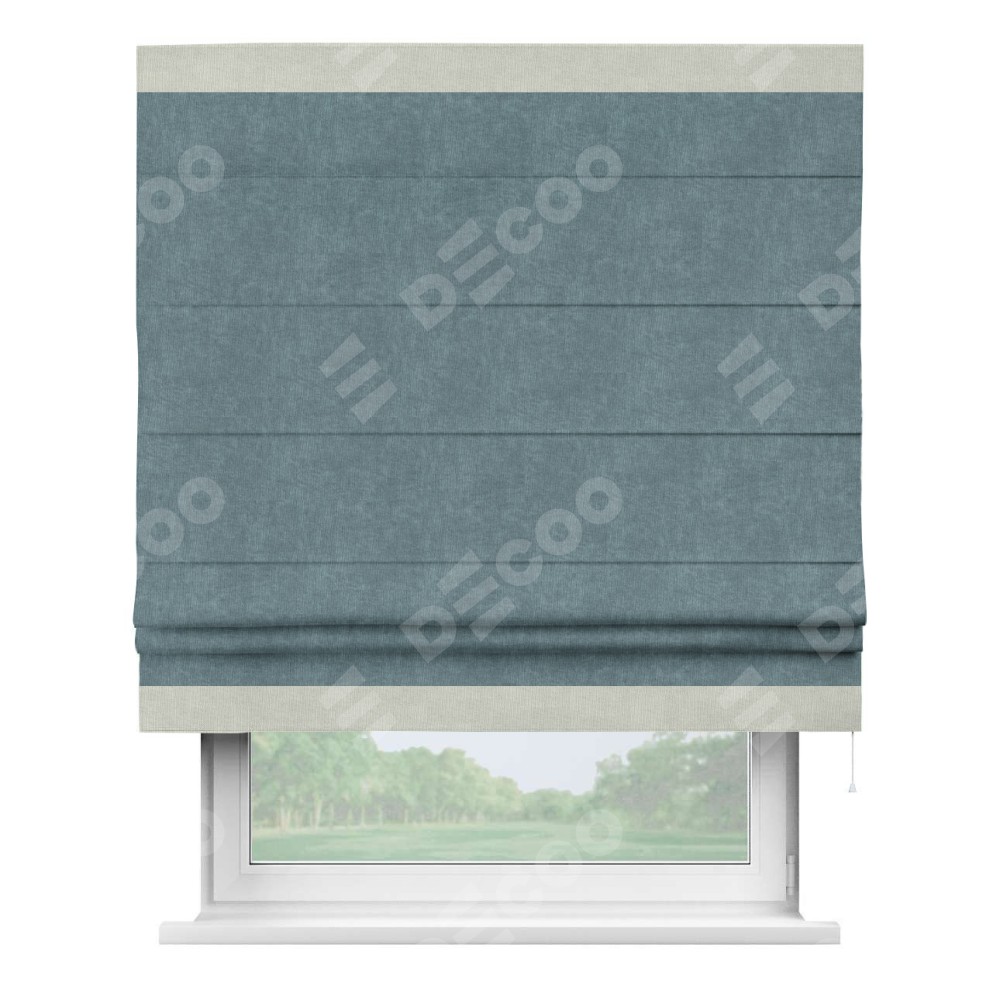Римская штора «Кортин» для проема, канвас серо-голубой, с кантом Горизонт