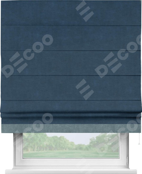 Римская штора «Кортин» для проема, канвас синий, с кантом Джестер