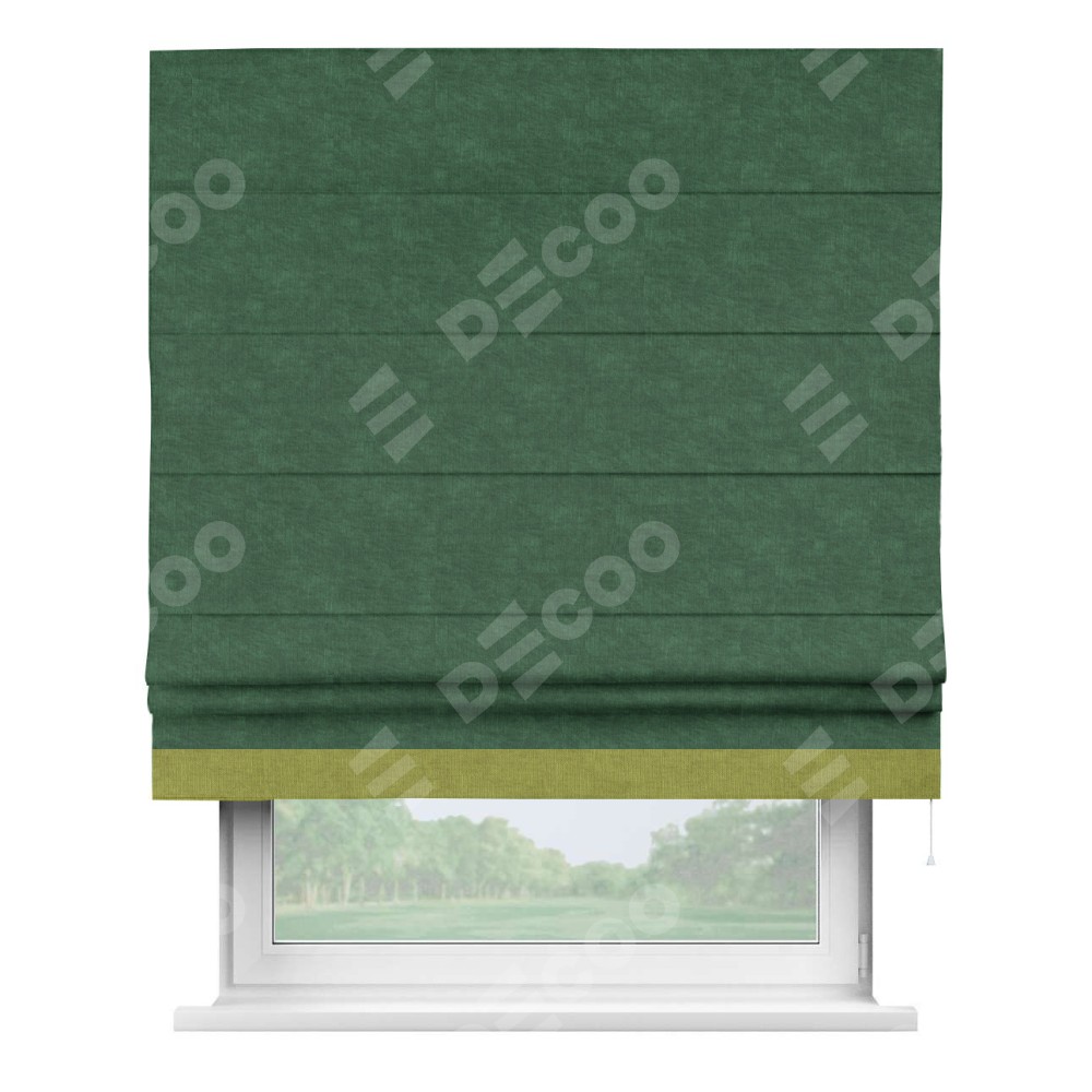 Римская штора «Кортин» для проема, канвас тёмно-зелёный, с кантом Джестер