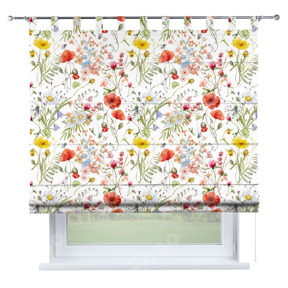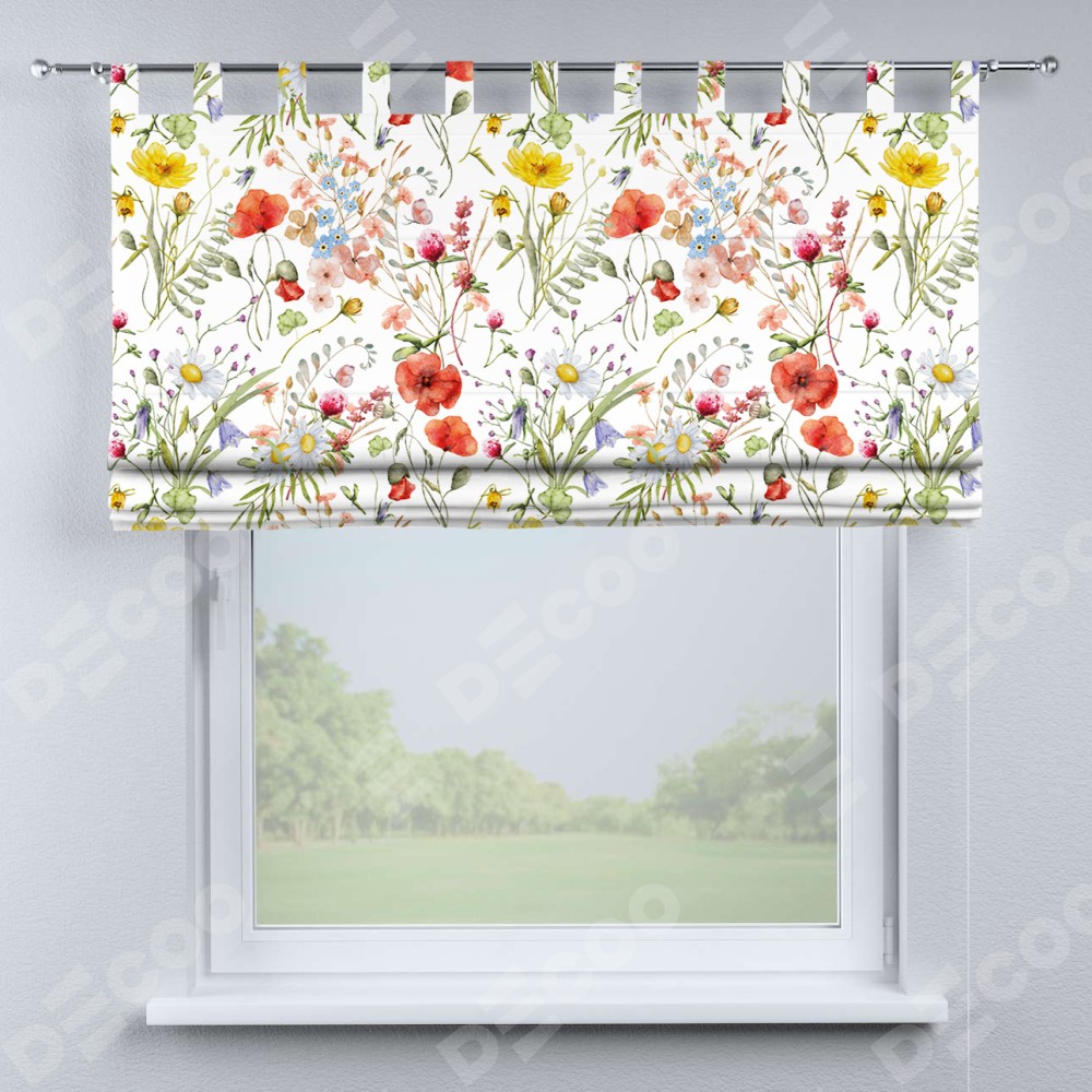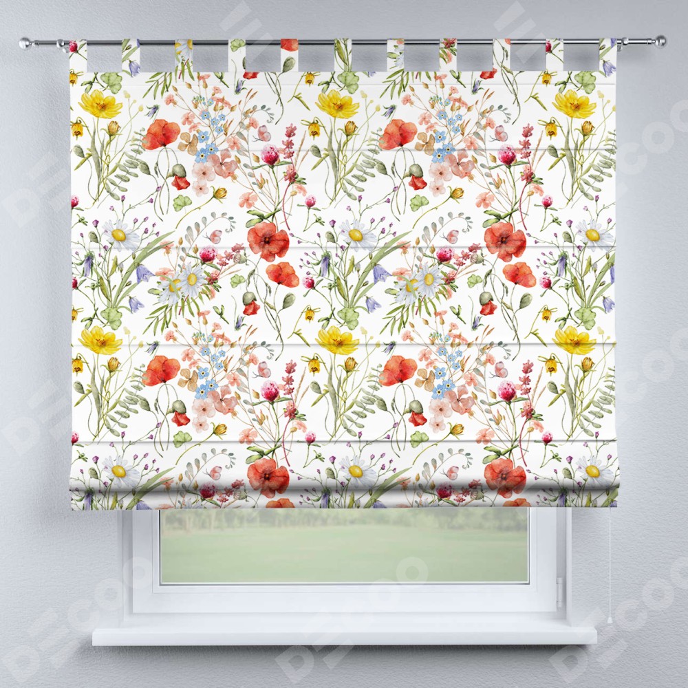 Римская штора производителя «Cortin», используется для проёма, пошита из ткани блэкаут с нанесением сублимационной печати «Полевые маки». Данная модель пошита на петлях, комплектуется на выбор круглым карнизом и подходит для монтажа на стену. Римская штора на петлях имеет простую систему регулировки высоты, отличительным преимуществом данной модели является простой способ монтажа. Достаточно повесить ее на трубу и штора готова!