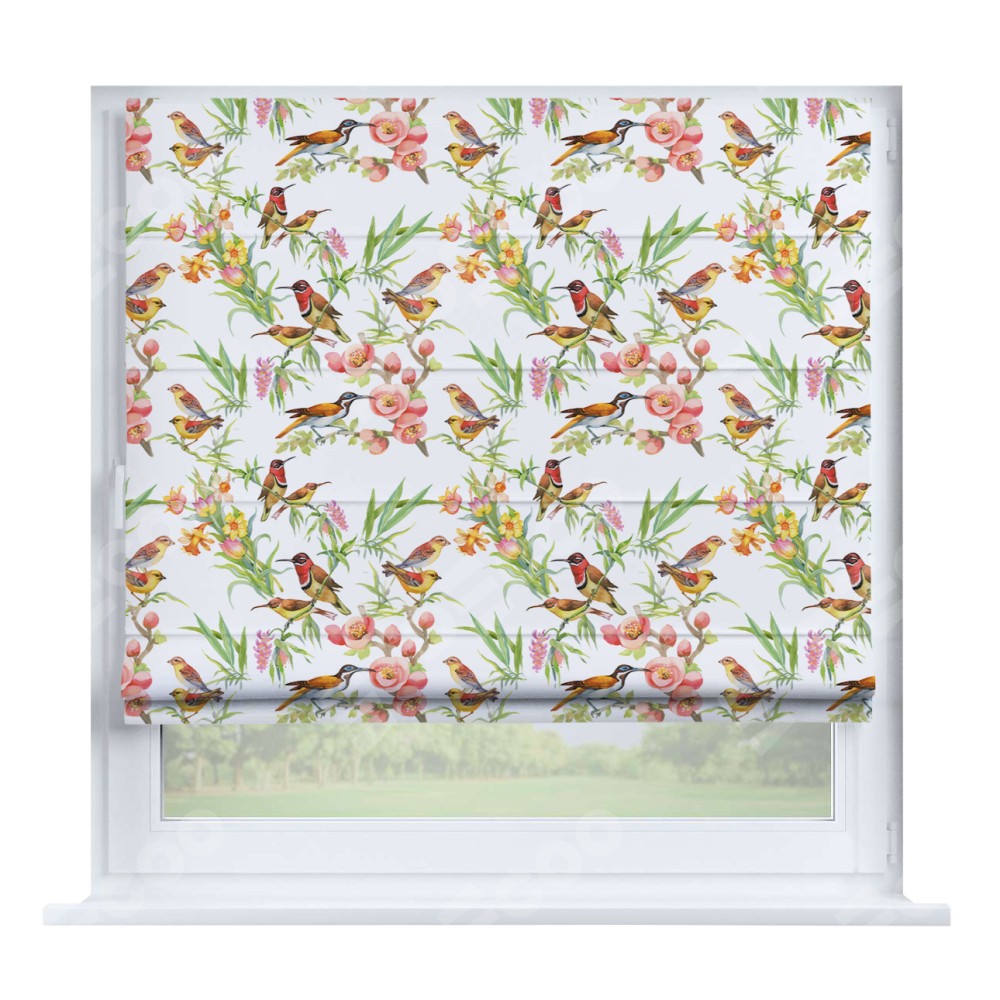 Римская штора производителя «Cortin», устанавливается на створку окна, пошита из ткани блэкаут с нанесением сублимационной печати «Певчие птички». Штора шьётся по индивидуальным размерам, для данного типа римской шторы возможная ширина от 35 до 150 см., высота до 250 см.