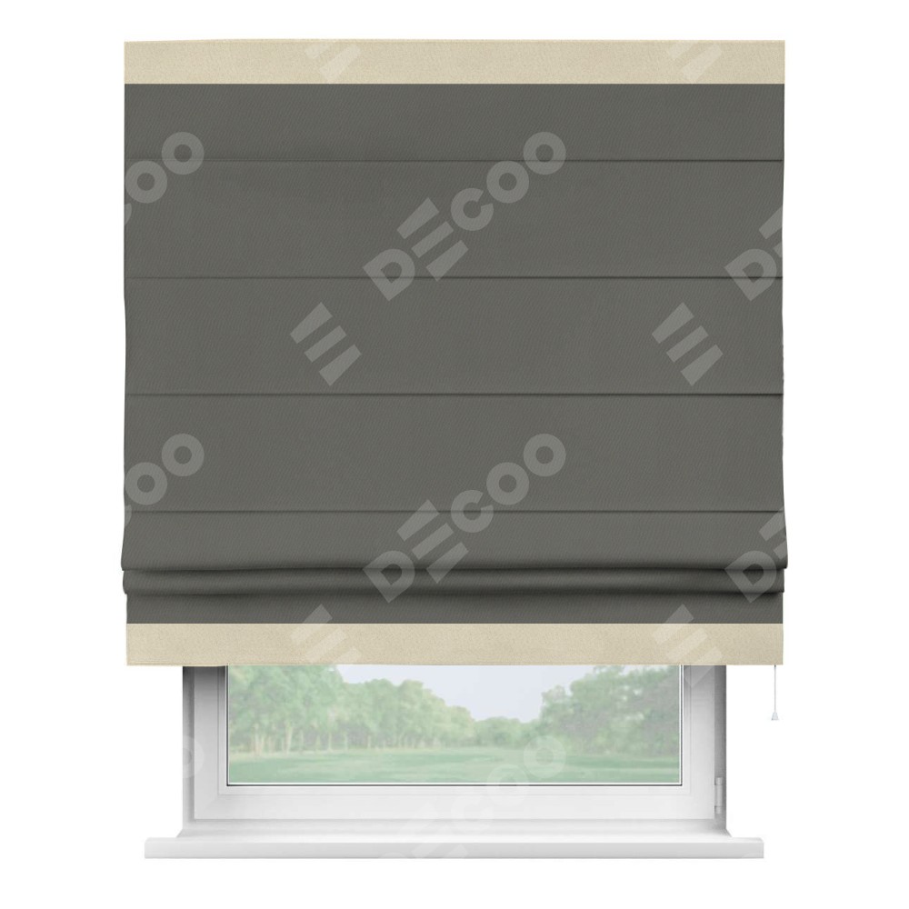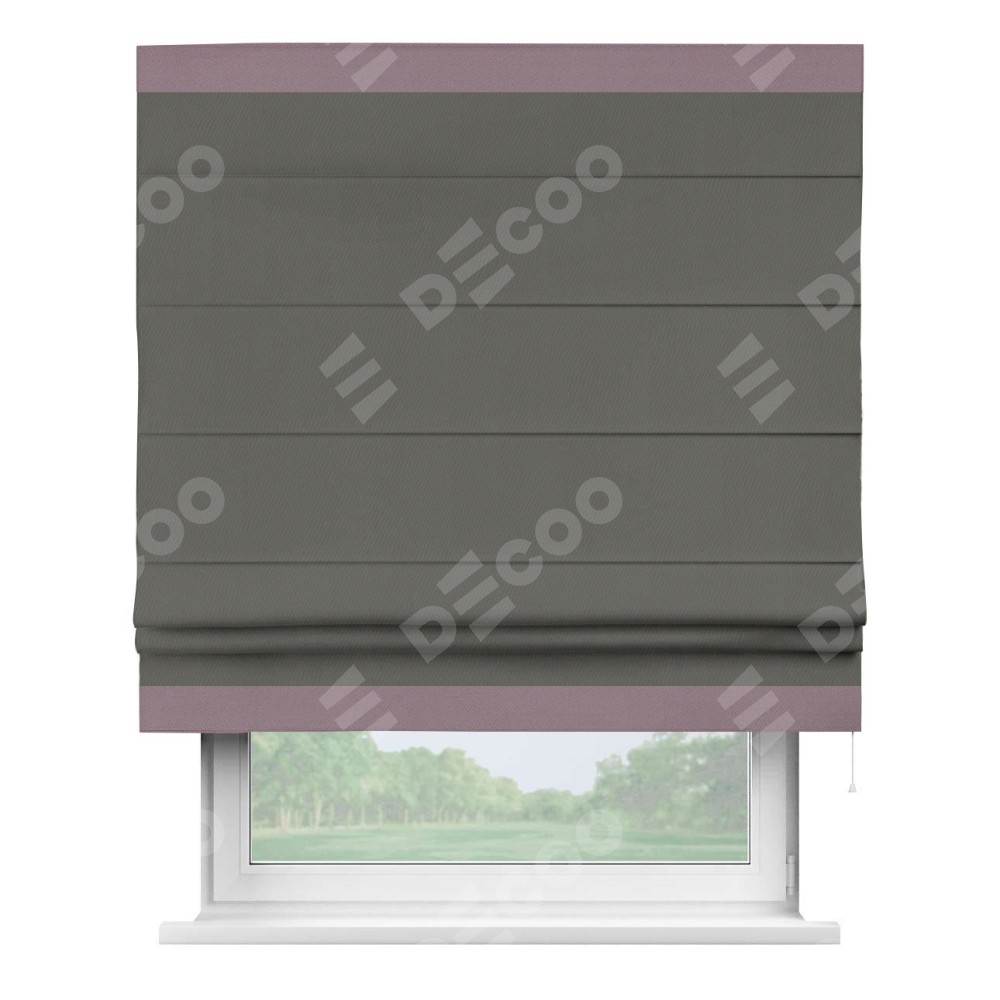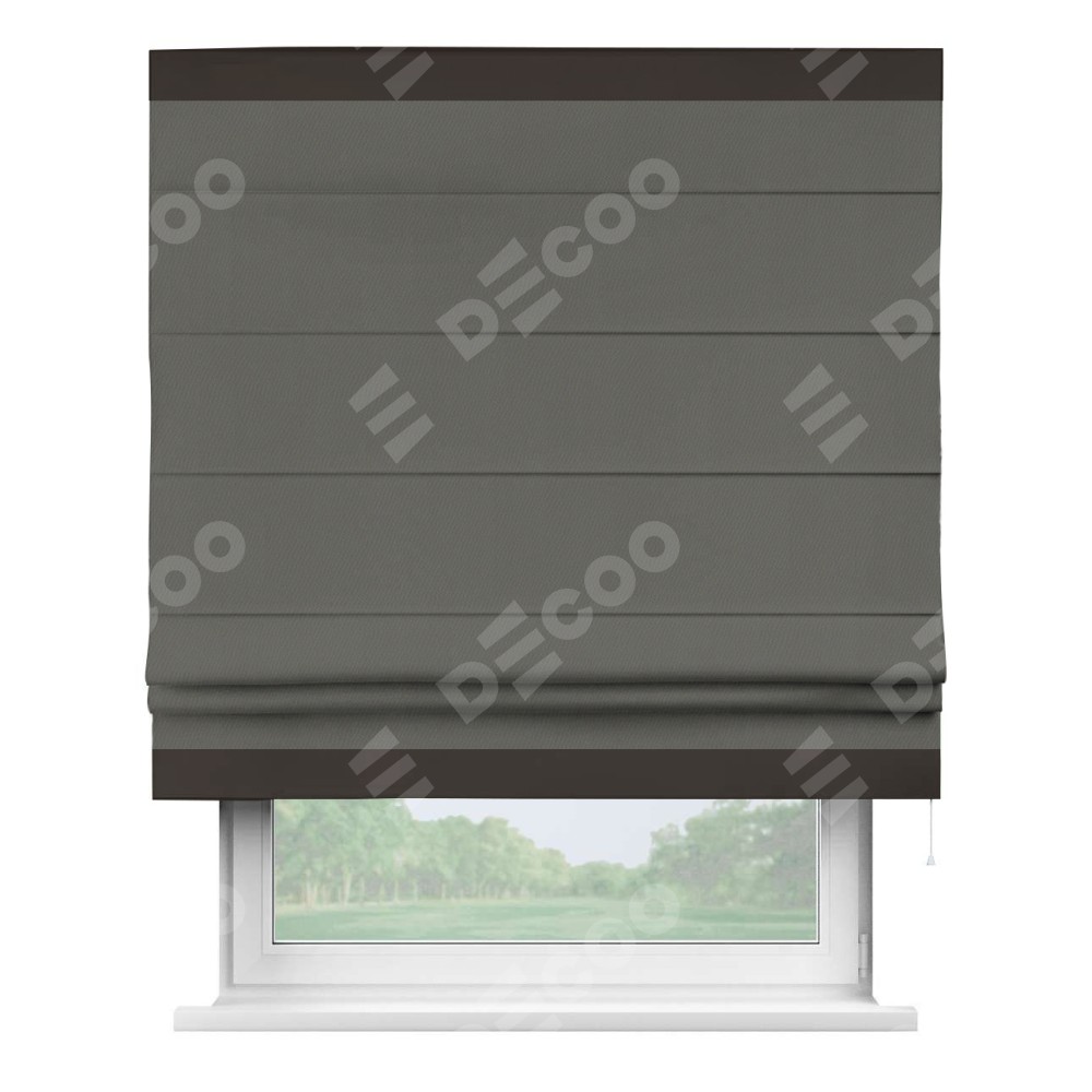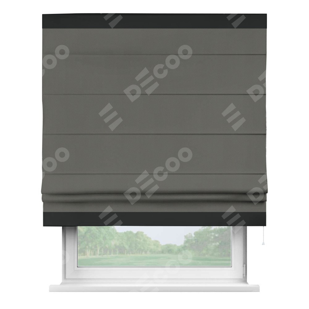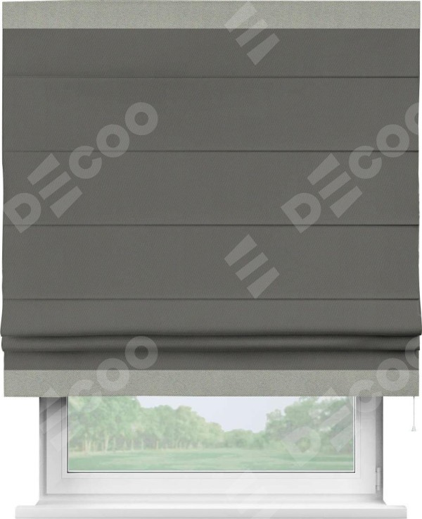 Римская штора «Кортин» для проема, блэкаут однотонный тёмно-серый с кантом Горизонт
