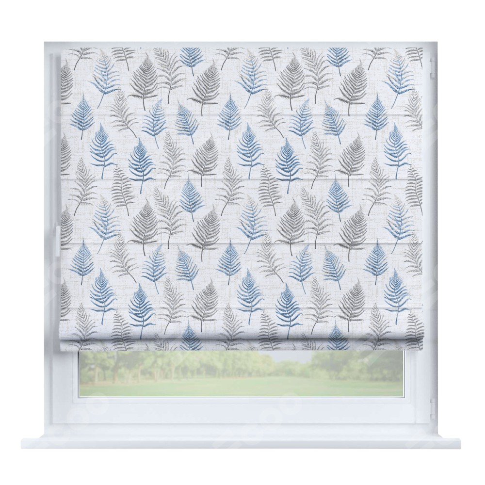 Римская штора производителя «Cortin», устанавливается на створку окна, пошита из ткани блэкаут с нанесением сублимационной печати «Королевский папоротник». Штора шьётся по индивидуальным размерам, для данного типа римской шторы возможная ширина от 35 до 150 см., высота до 250 см.
