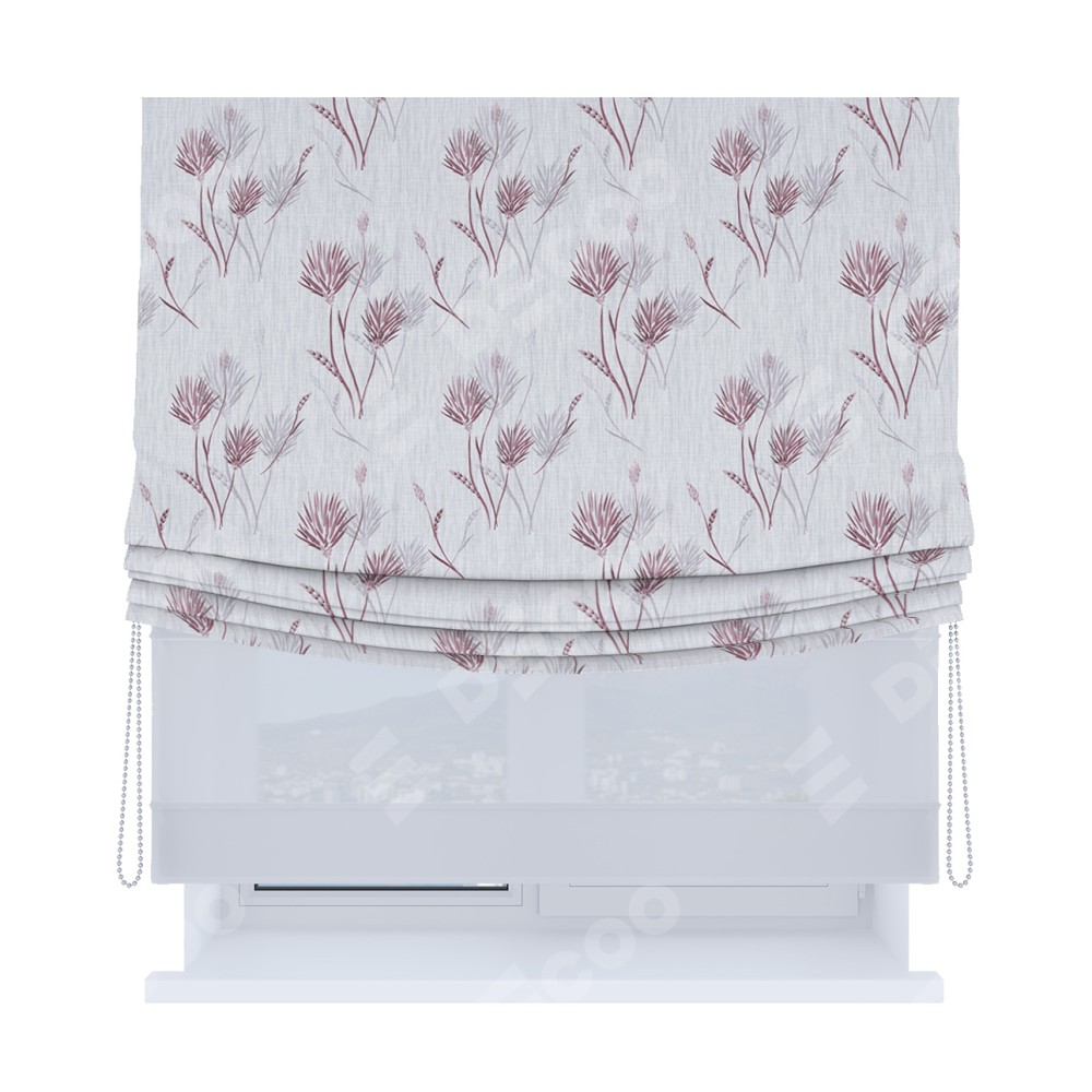 Римская штора «Кортин», день-ночь с мягкими складками, «Полевые травы серый»
