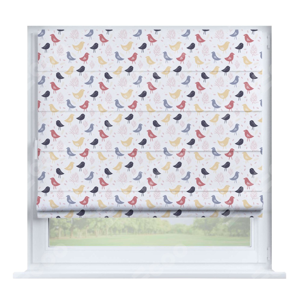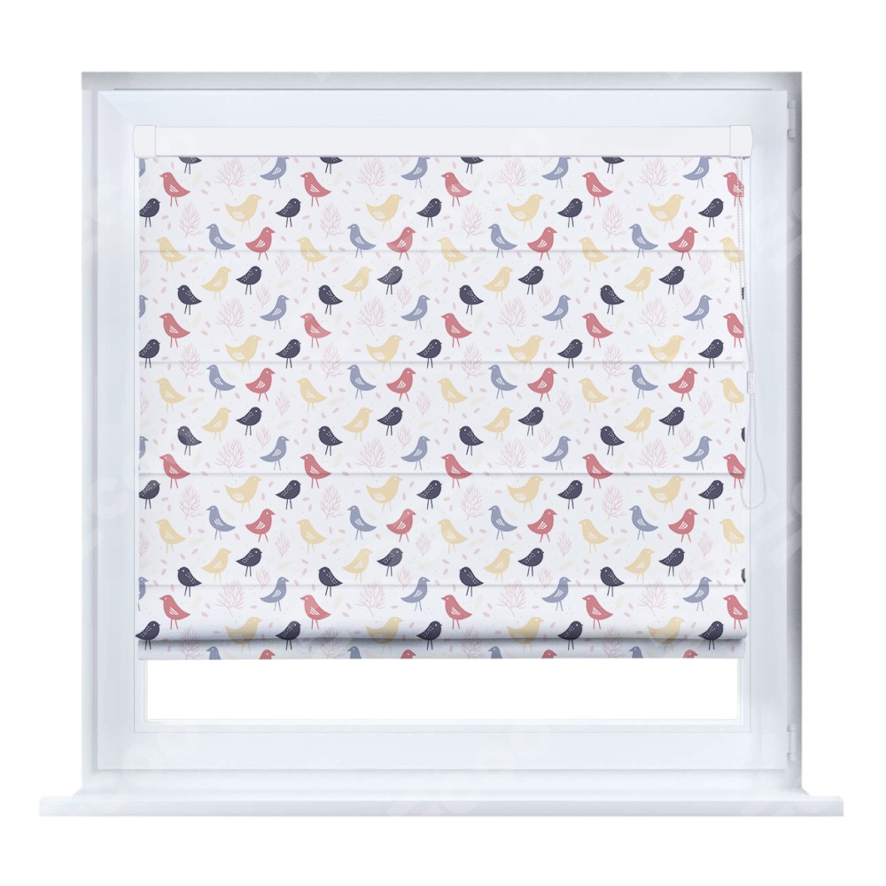 Римская штора производителя «Cortin», устанавливается на створку окна, пошита из ткани блэкаут с нанесением сублимационной печати «Цветные птички». Штора шьётся по индивидуальным размерам, для данного типа римской шторы возможная ширина от 35 до 150 см., высота до 250 см.