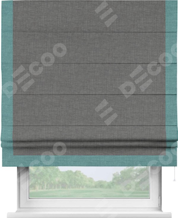 Римская штора «Кортин» с кантом Виктория, для проема, лён тёмно-серый