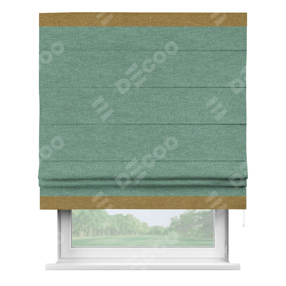 Римская штора «Кортин» с кантом Горизонт, для проема, твид блэкаут бирюзовый