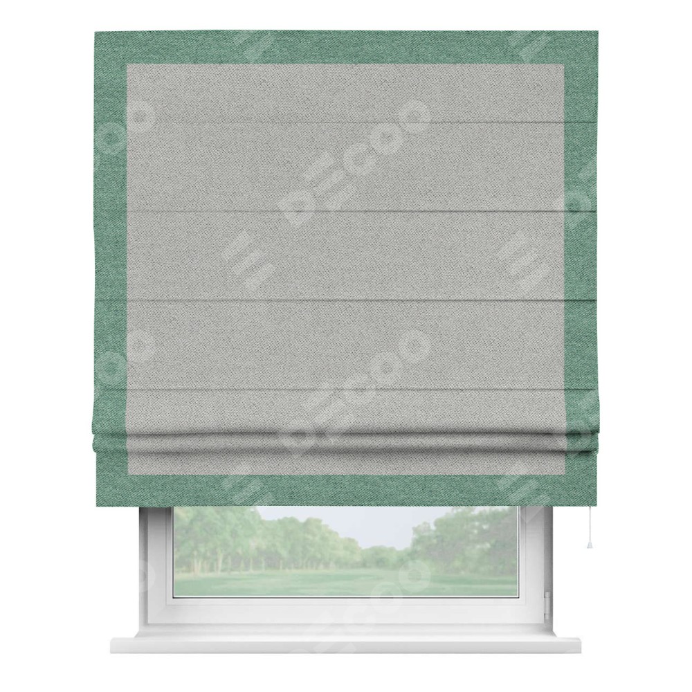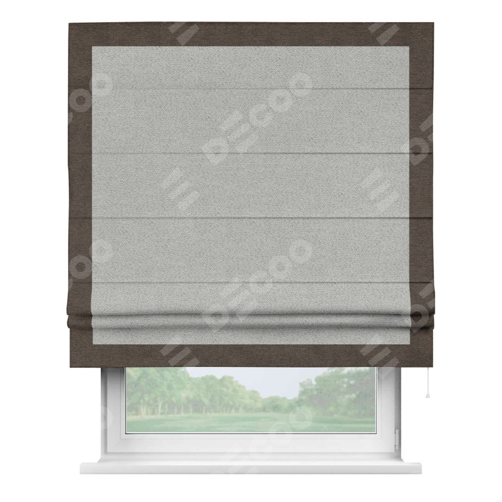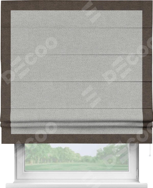 Римская штора «Кортин» для проема, твид блэкаут светло-серый, с кантом Чесс