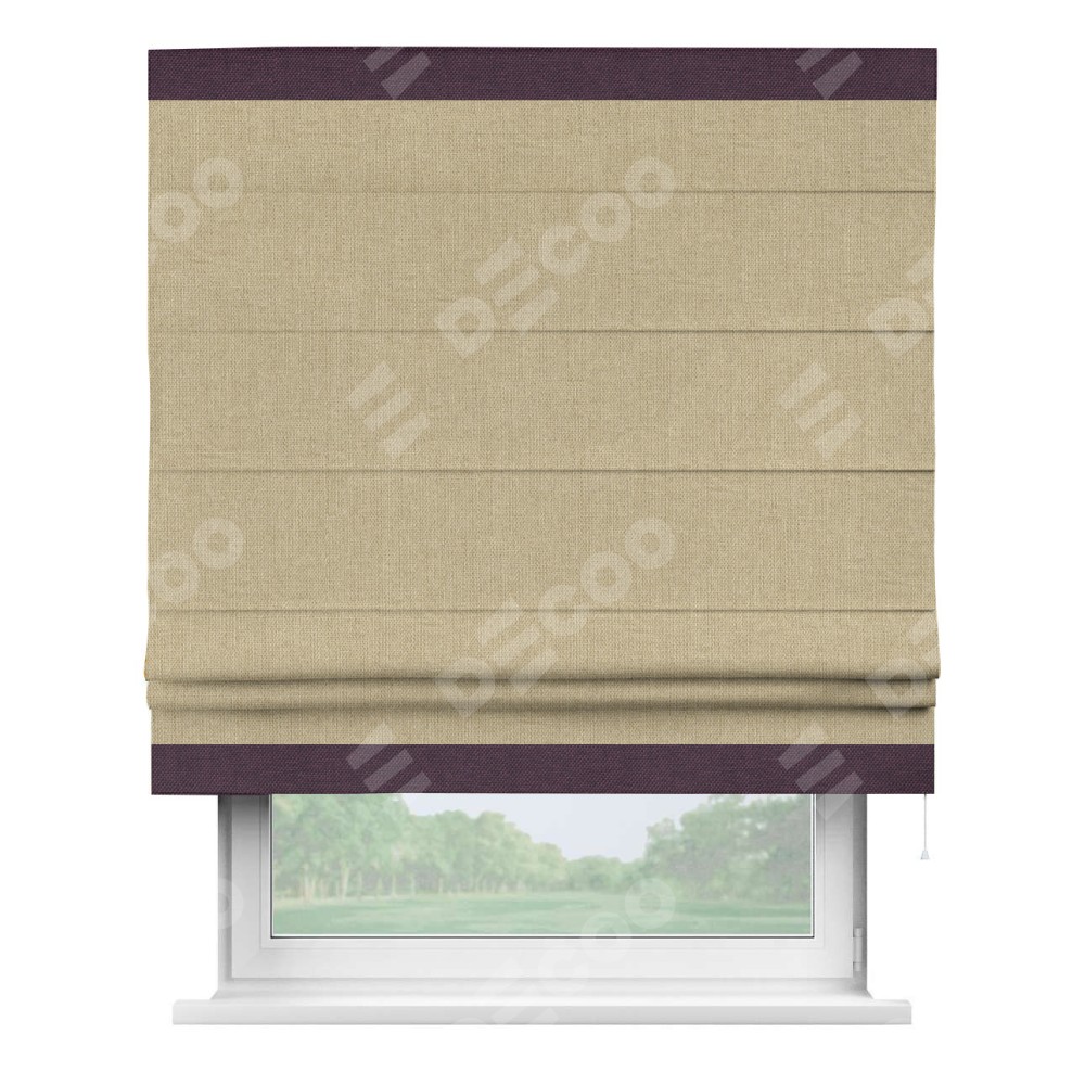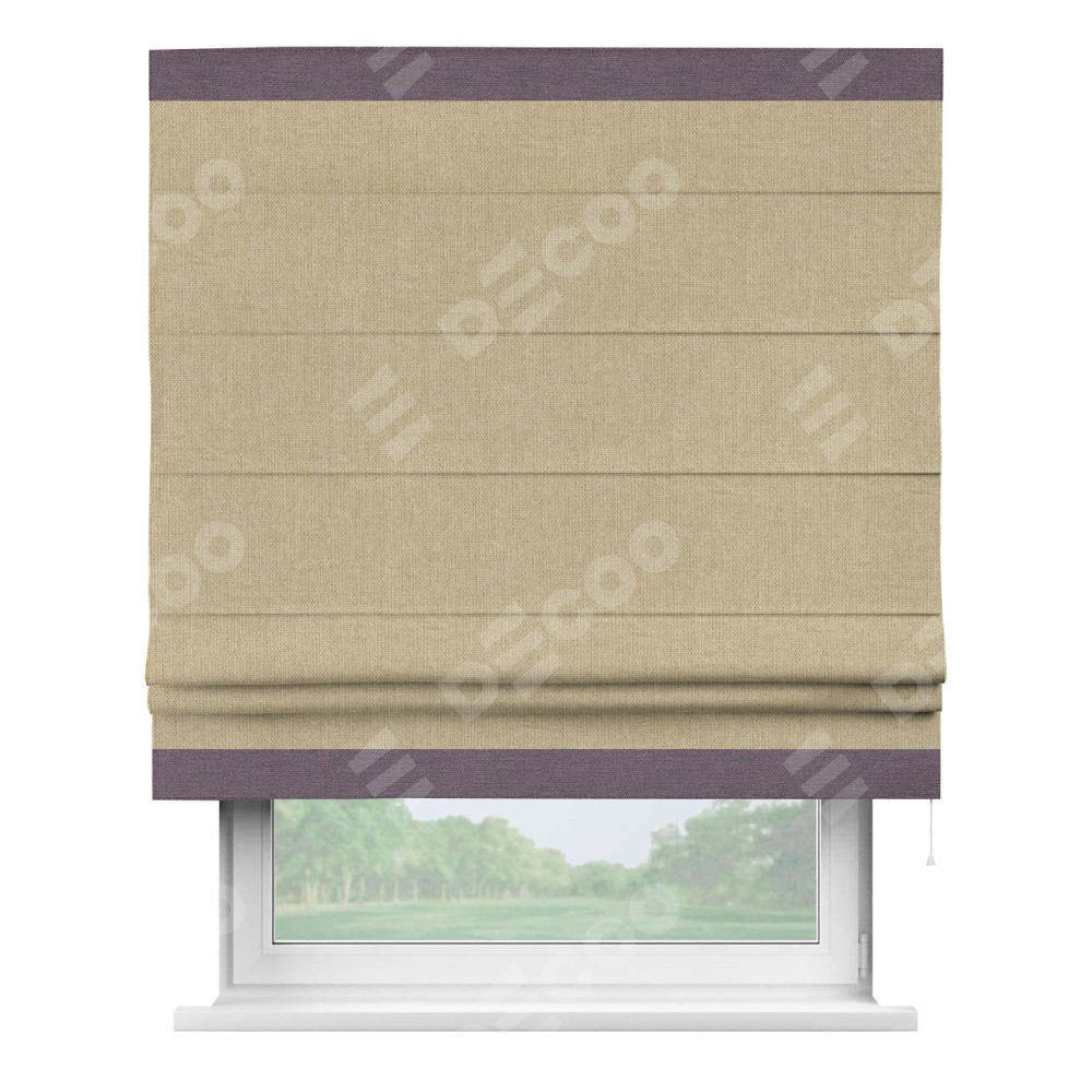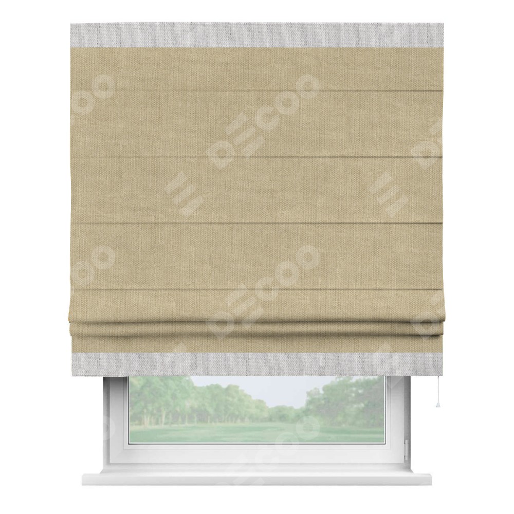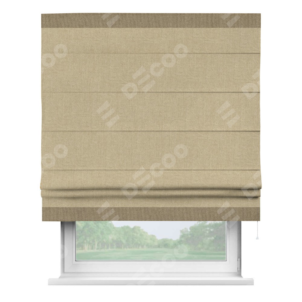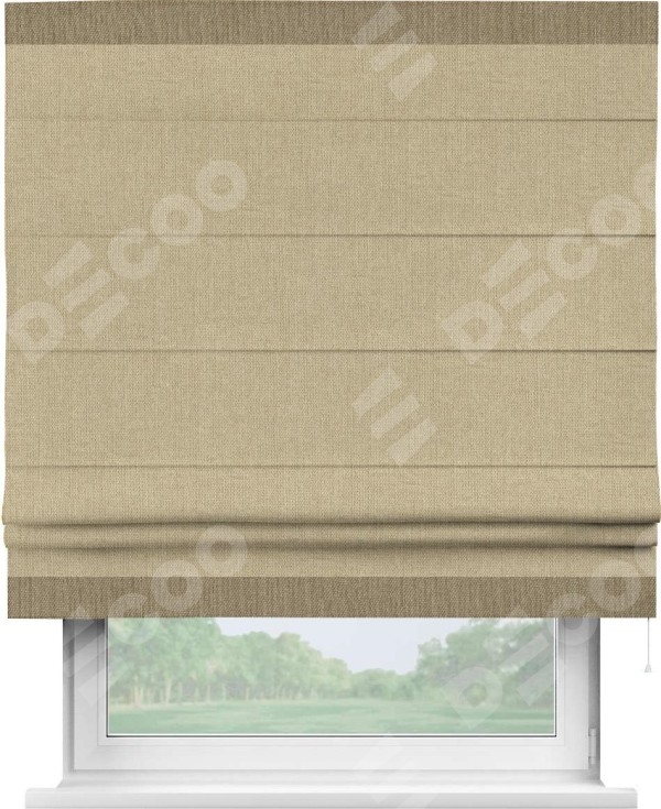 Римская штора «Кортин» для проема, лён димаут песочный с кантом Горизонт