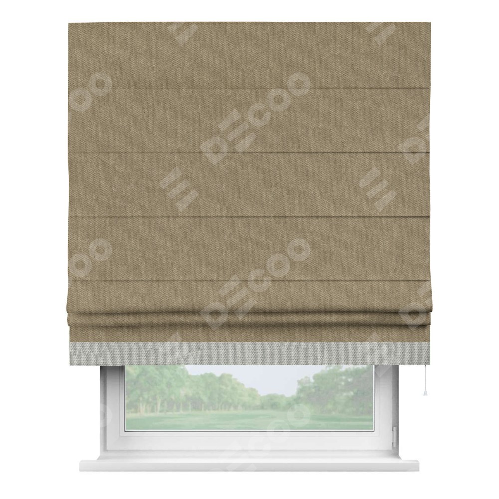 Римская штора «Кортин» для проема, лён димаут тёмно-бежевый с кантом Джестер