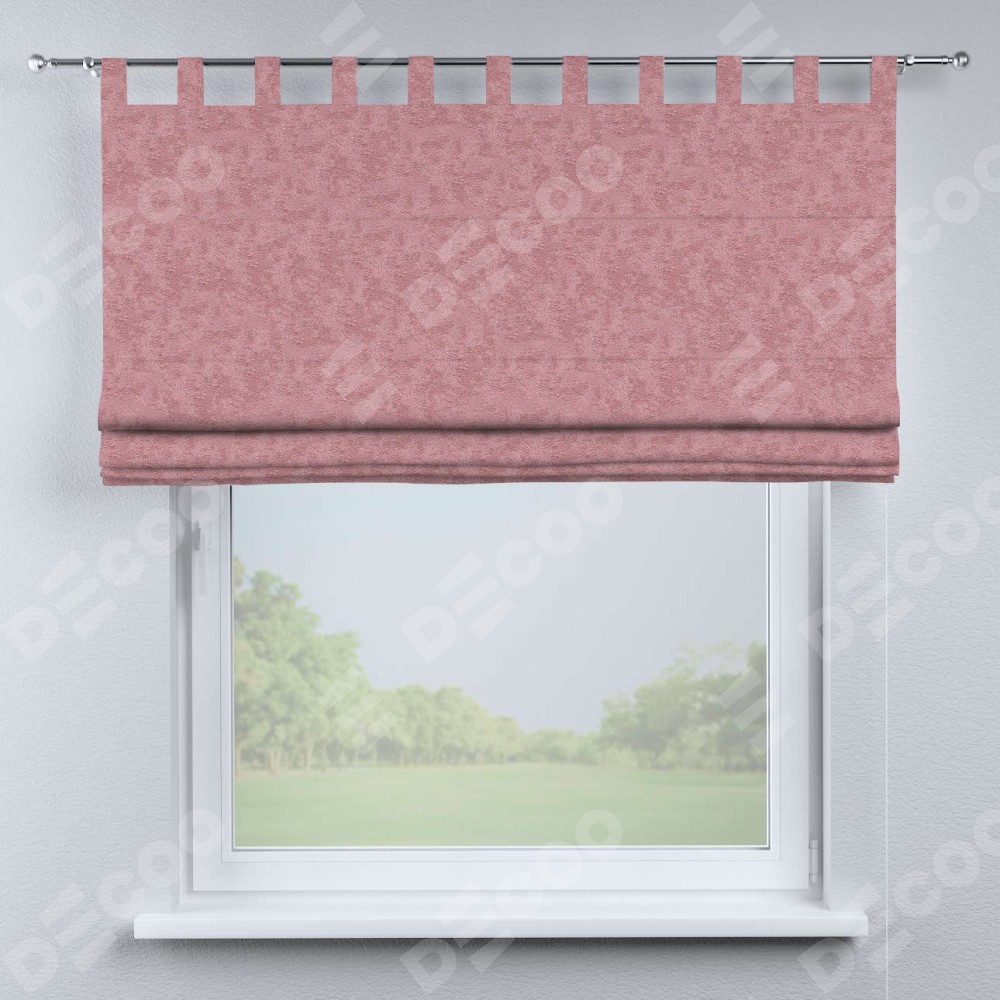 Римская штора производителя «Cortin», используется для проёма, пошита из ткани софт мрамор розовый, артикул ткани 93584. Данная модель пошита на петлях, комплектуется на выбор круглым карнизом и подходит для монтажа на стену. Римская штора на петлях имеет простую систему регулировки высоты, отличительным преимуществом данной модели является простой способ монтажа. Достаточно повесить ее на трубу и штора готова!